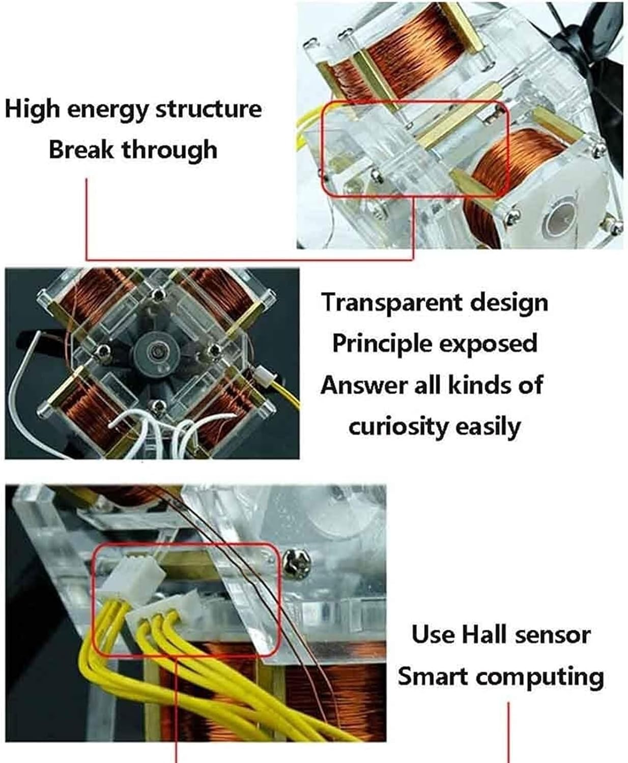 Con sensore Hall, calcolo intelligente. Materiale acrilico. Taglio laser, senza sbavature, per evitare lesioni durante l'uso o l'esperimento. La variazione della tensione di uscita dell'IC Hall può indicare che l'albero si trova in una determinata posizione. Con questo principio di funzionamento, il motore può essere controllato per ruotare. Il modello è realizzato con materiali trasparenti, il principio è pubblico, è facile introdurre il principio e stimolare l'intenzione di apprendimento originale. Design, campo magnetico più forte, velocità più elevata, a strati, semplice ed elegante - può essere posizionato sul tavolo, struttura ad alta energia, rompe le convenzioni. Rispondi facilmente a varie curiosità. Questo bellissimo motore da sala con pale del ventilatore ad alta velocità può essere un buon regalo per i tuoi amici, la tua famiglia o te stesso. È anche un ottimo ornamento da scrivania pieno di senso della tecnologia