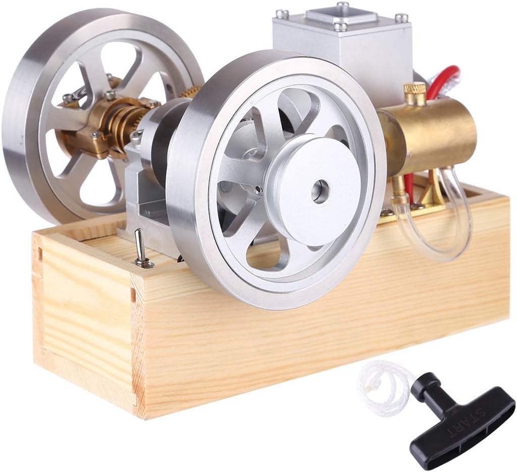 Un motore incostante è un tipo di motore a combustione interna a quattro tempi controllato da un regolatore per funzionare a una velocità prestabilita. Il motore a benzina è realizzato in metallo e la superficie è lucidata per renderla molto liscia. Il motore Stirling con raffreddamento ad acqua con base in legno per un facile posizionamento e funzionamento. Dimensioni motore: 180 x 125 x 75 mm. Dimensioni base in legno: 180 x 66 x 50 mm. Diametro del cilindro: 22 mm. Corsa: 20mm Rotazione: 1200 giri/min. Alimentazione: 3,7 V. Carburante: benzina. Il motore ha una vasta gamma di applicazioni, un ottimo regalo per gli oggetti dimostrativi dell'insegnante in classe, un regalo di compleanno per amici e famiglie.