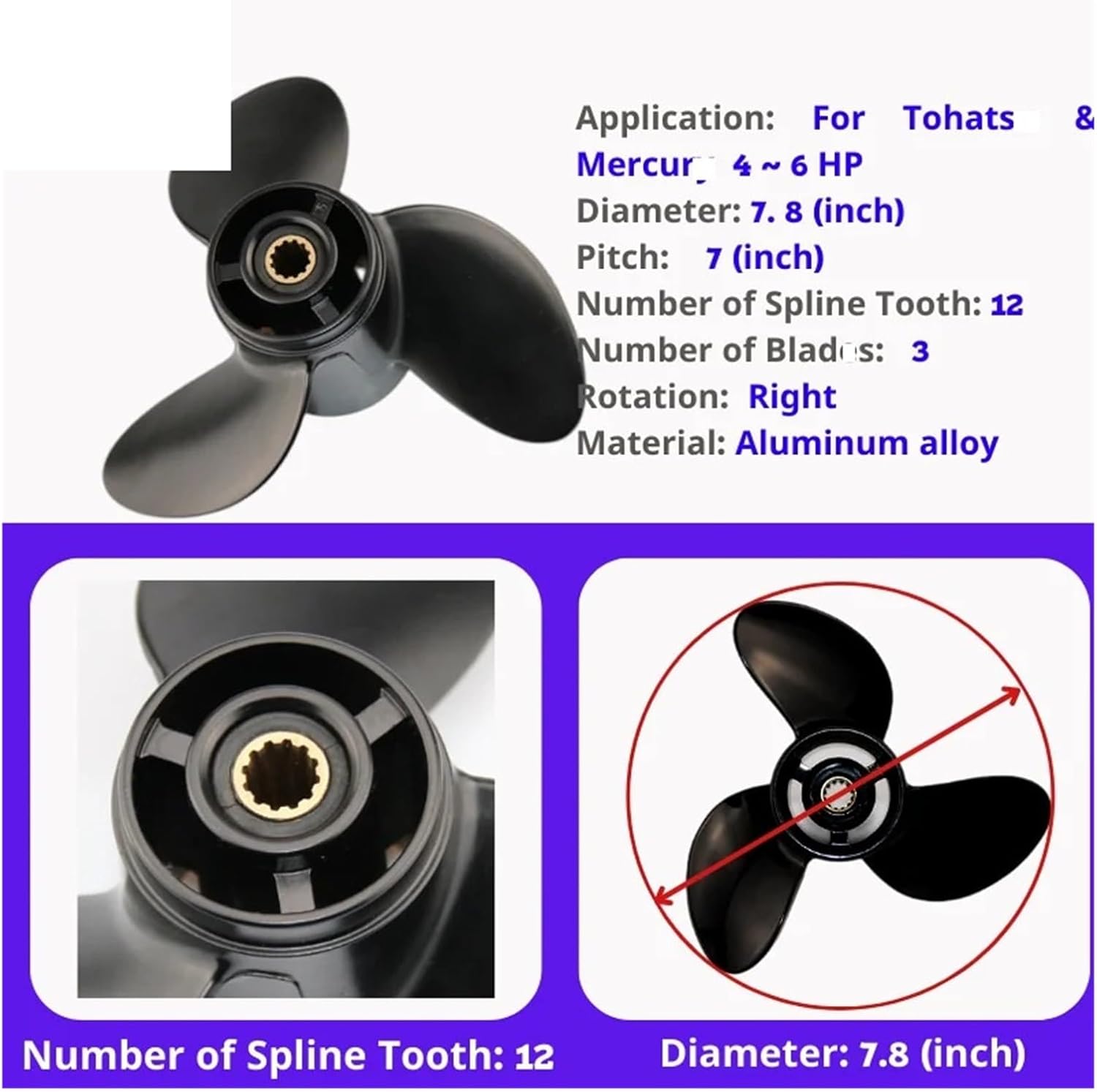 Motore marino fuoribordo 7.8x7 per barca a elica in lega di alluminio con 12 scanalature per NI.s/san 4hp 5hp 6hp
