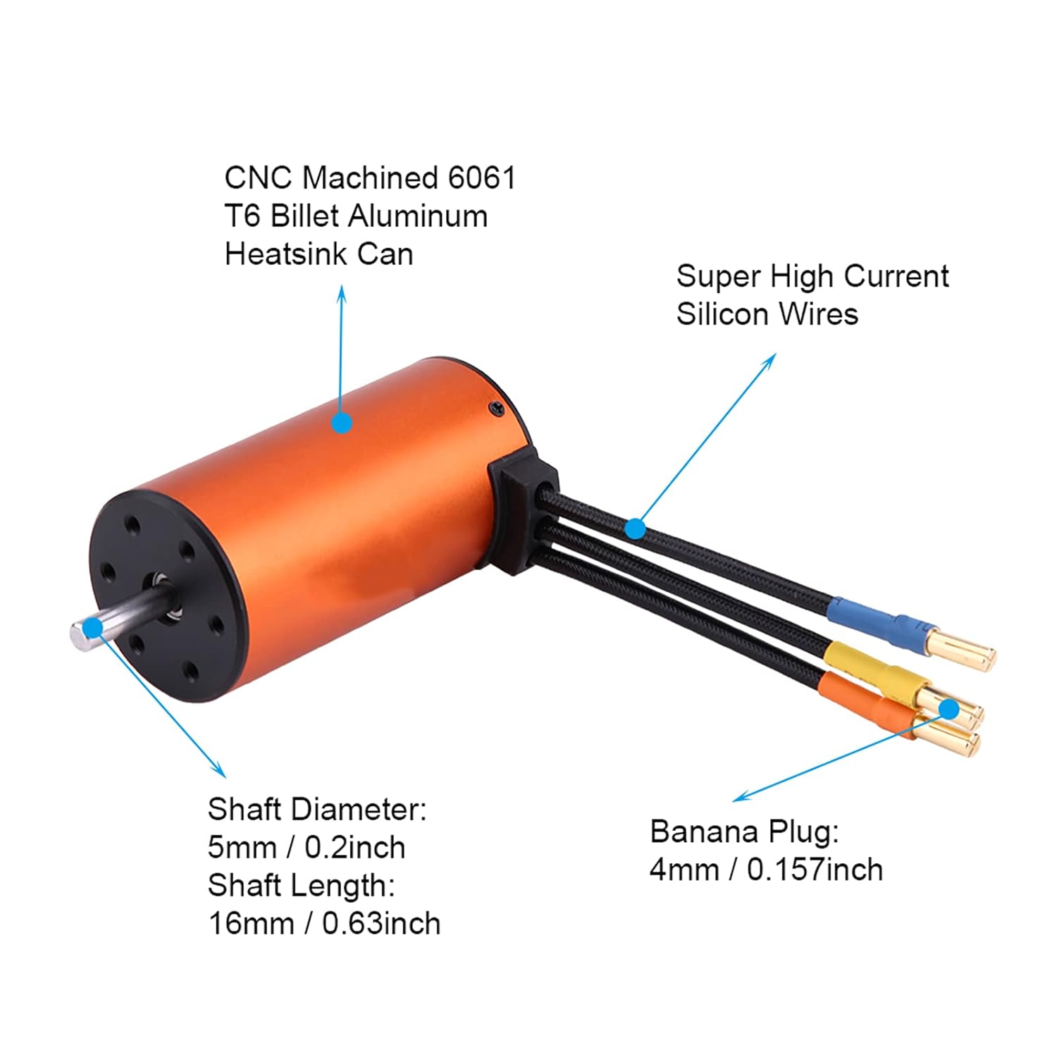 Adatto a veicoli telecomandati 1/8 con sistema di montaggio multiplo per viti M3. Precisione per la massima conversione di potenza. Il rotore bilanciato di precisione ha una grande scorrevolezza per la massima affidabilità e velocità. Rotore rimovibile/sostituibile e grande cuscinetto ABEC5 ad alta velocità. Il design a 4 poli offre coppia elevata ed alta efficienza. Una bobina in rame ad alta purezza può massimizzare l'efficienza. Il dissipatore di calore in alluminio billet CNC 6061 T6 è durevole ed ecologico.