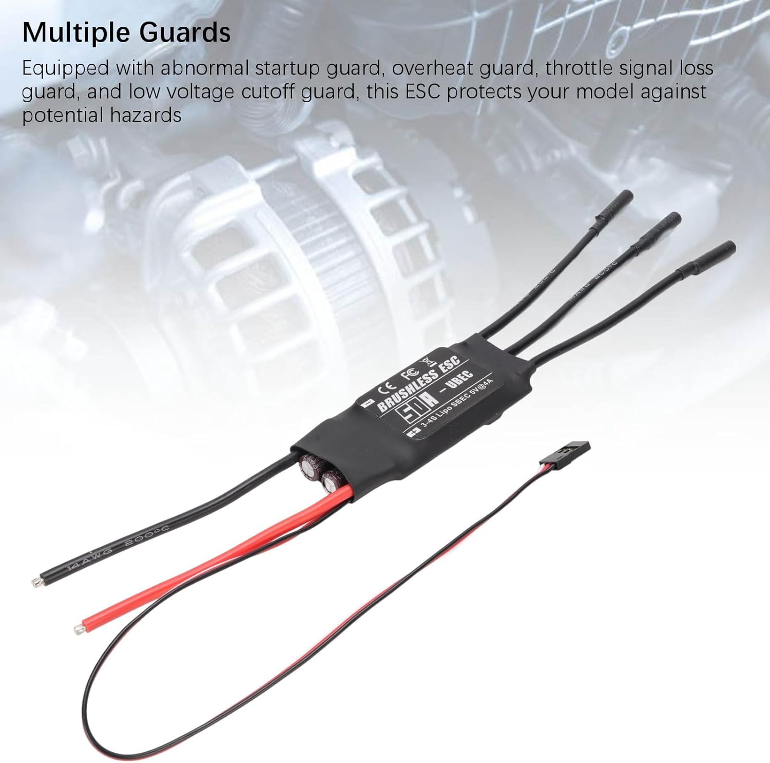 Avvio sicuro: questo ESP senza spazzole RC è progettato con una funzione di blocco 'acceleratore sicuro, il che significa che il motore non si impegnerà indipendentemente lla posizione 'acceleratore durante l'accensione. Questa importante caratteristica di sicurezza aiuta a prevenire partenze involontarie e offre ai piloti un ulteriore tranquillità quando si maneggiano il loro aereo RC. Protezione multipla: l'ESC senza spazzole aeroplano RC include più meccanismi di protezione come rilevamento degli errori di avvio, monitoraggio a temperatura, protezione a perdita del segnale 'acceleratore e taglio a bassa tensione. Questi sistemi integrati aiutano a estendere la vita motoria e proteggere l'ESC in varie condizioni. Prestazioni: con il supporto per una sche di programmazione e la programmazione remota tramite il trasmettitore, il motore RC Brushless ESC consente agli utenti di configurare facilmente le impostazioni come la molità freno, la risposta di accelerazione e il tempismo, questo ESC senza spazzole RC si atta a una vasta gamma di preferenze di volo. Controllo stabile: progettato per le prestazioni, questo controller di velocità elettrica RC supporta le curve di farfalla lineari e una risposta rapi, rendendo facile mantenere il controllo durante il decollo, la crociera e l'atterraggio e la molità di avvio programmabile consente un'accelerazione regolare atta alle esigenze di volo. Impostazione intuitiva: progettata per facilità d'uso, questo ESP senza spazzole aeroplano moo è semplice installare e configurare, sia che tu stia volando in una palestra interna locale o in un ampio campo aperto. Con operazioni intuitive e ampia compatibilità, un'opzione ideale per gli hobbisti in cerca di prestazioni, semplicità.