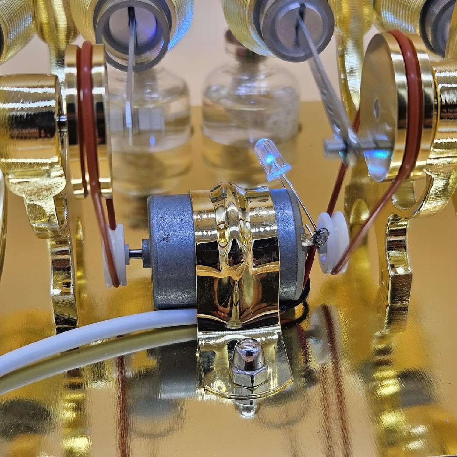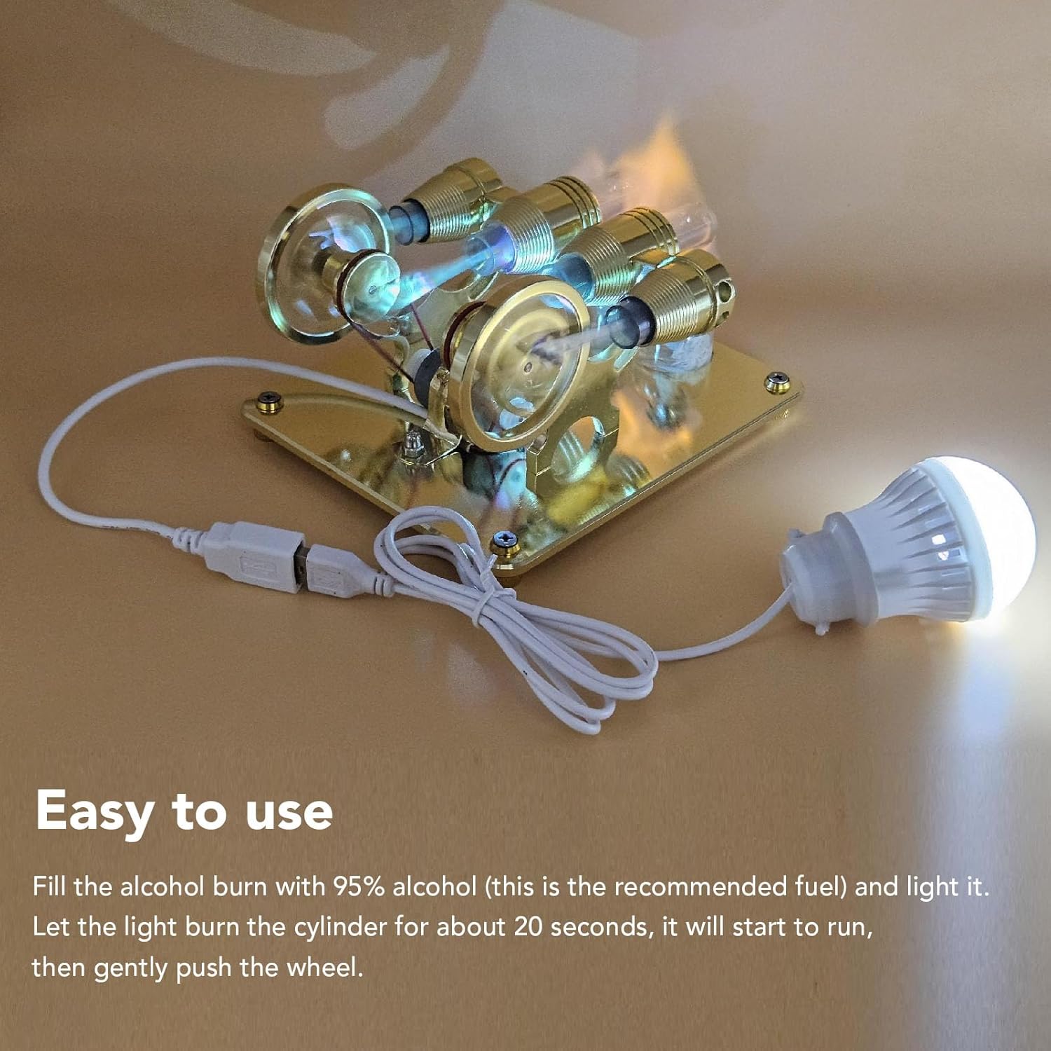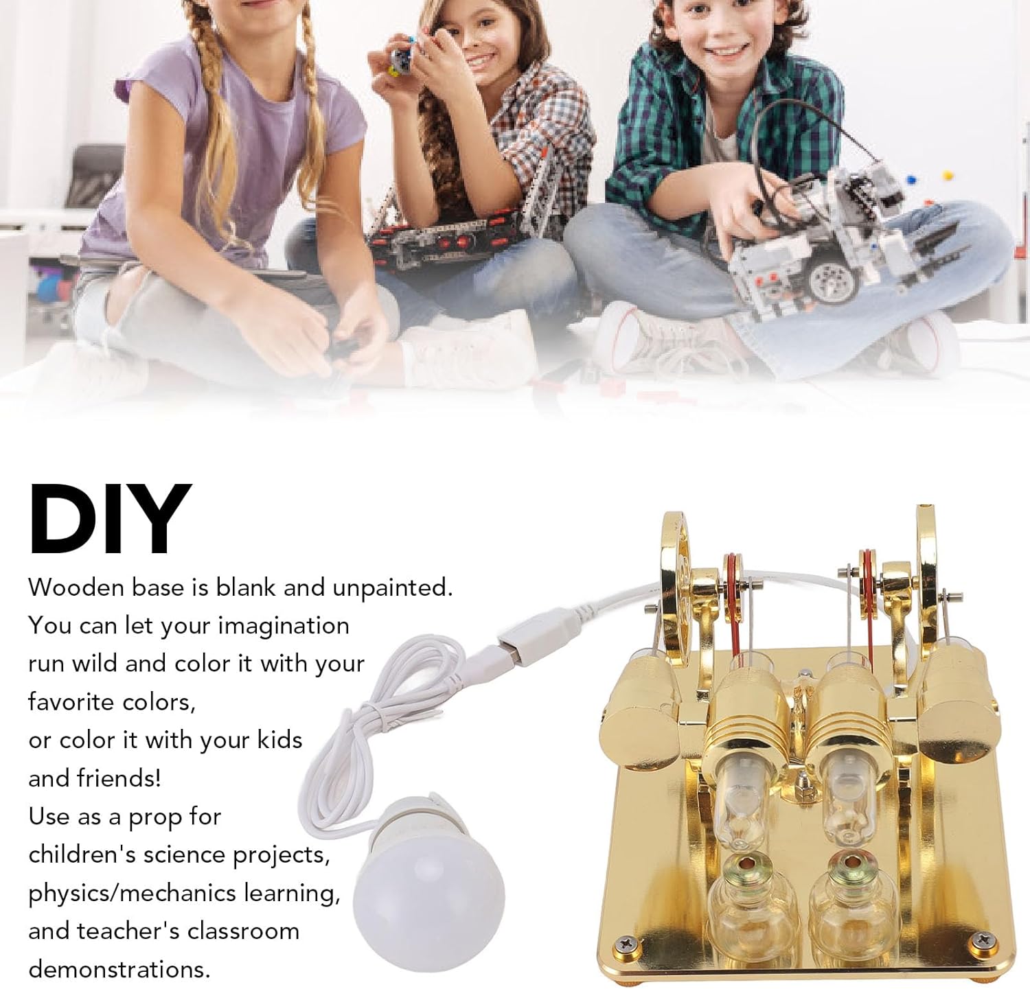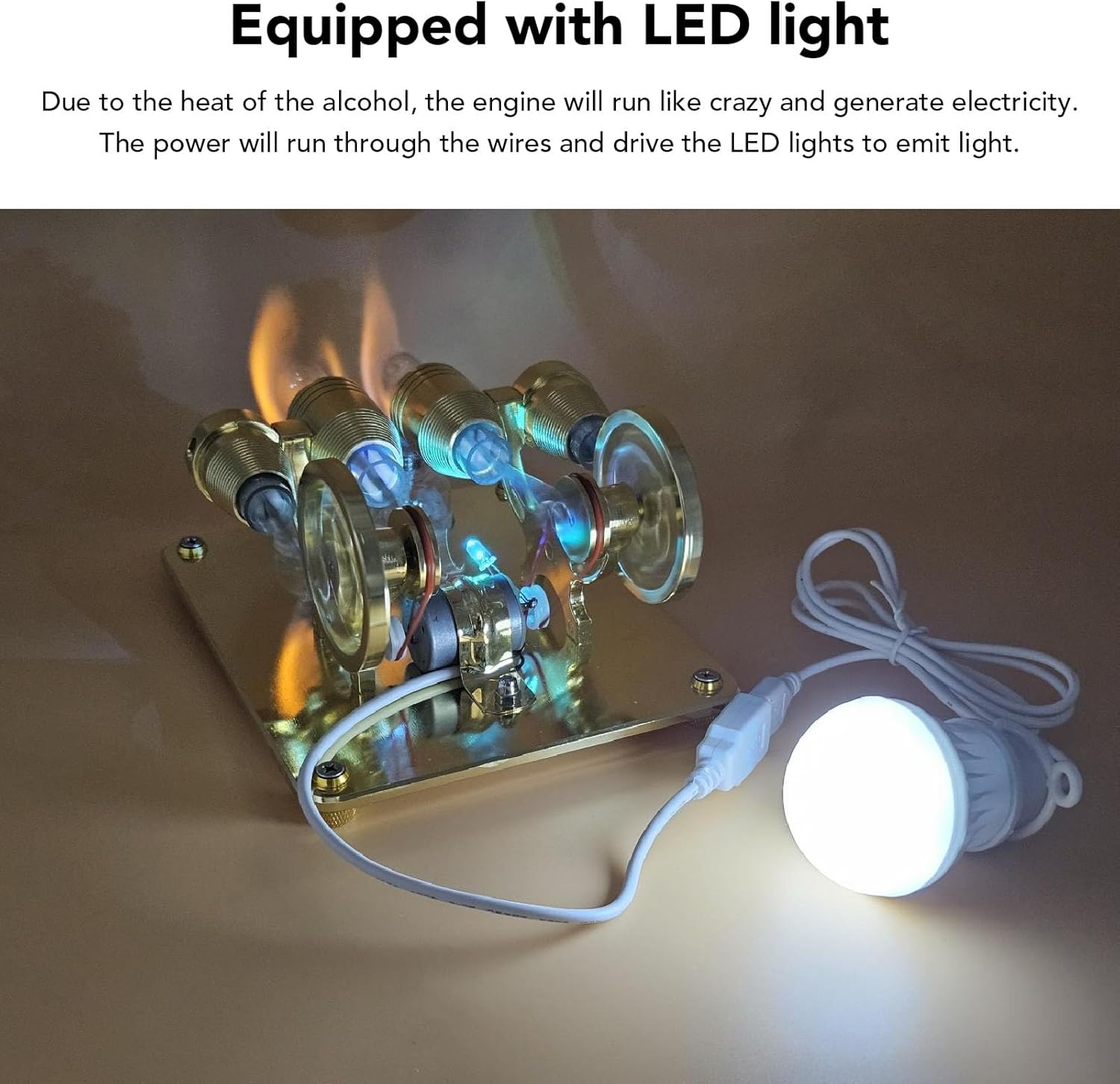 AMPIE APPLICAZIONI: Il modello di motore Stirling ad aria calda ha una vasta gamma di applicazioni e può essere utilizzato come supporto per progetti scientifici per bambini, apprendimento di fisica e meccanica e dimostrazioni in classe per gli insegnanti. BASE FAI DA TE: La base in legno è vuota, puoi usare la tua immaginazione e dipingerla con il tuo colore preferito o dipingerla con i tuoi bambini o amici. FACILE DA USARE: riempire il bruciatore ad alcool con alcool al 95% (questo carburante è consigliato) e accenderlo (l'alcool al 75% è supportato, ma le sue prestazioni sono inferiori a quelle dell'alcool al 95%). Lascia che la lampada bruci il cilindro per circa 20 secondi, quindi premi delicatamente la ruota e funzionerà per più di 8 ore senza danni. CON LUCE LED: Motore Stirling con luce LED e luce LED. A causa della presenza di alcol di alta qualità, il motore funziona come un matto e genera elettricità. La corrente scorre attraverso i fili e spinge la luce LED a emettere luce. FORTE E DUREVOLE: il motore Stirling è realizzato in lega di alluminio, piastra di base CNC e materiale in vetro, la piastra è in legno di pino, lavorazione finemente fresata; La staffa è in acciaio stampato, robusta, il volano, il pistone ventilato, il vano fine in lega di alluminio, finemente fresato, la doppia combinazione di struttura e bellezza, più stabile.
