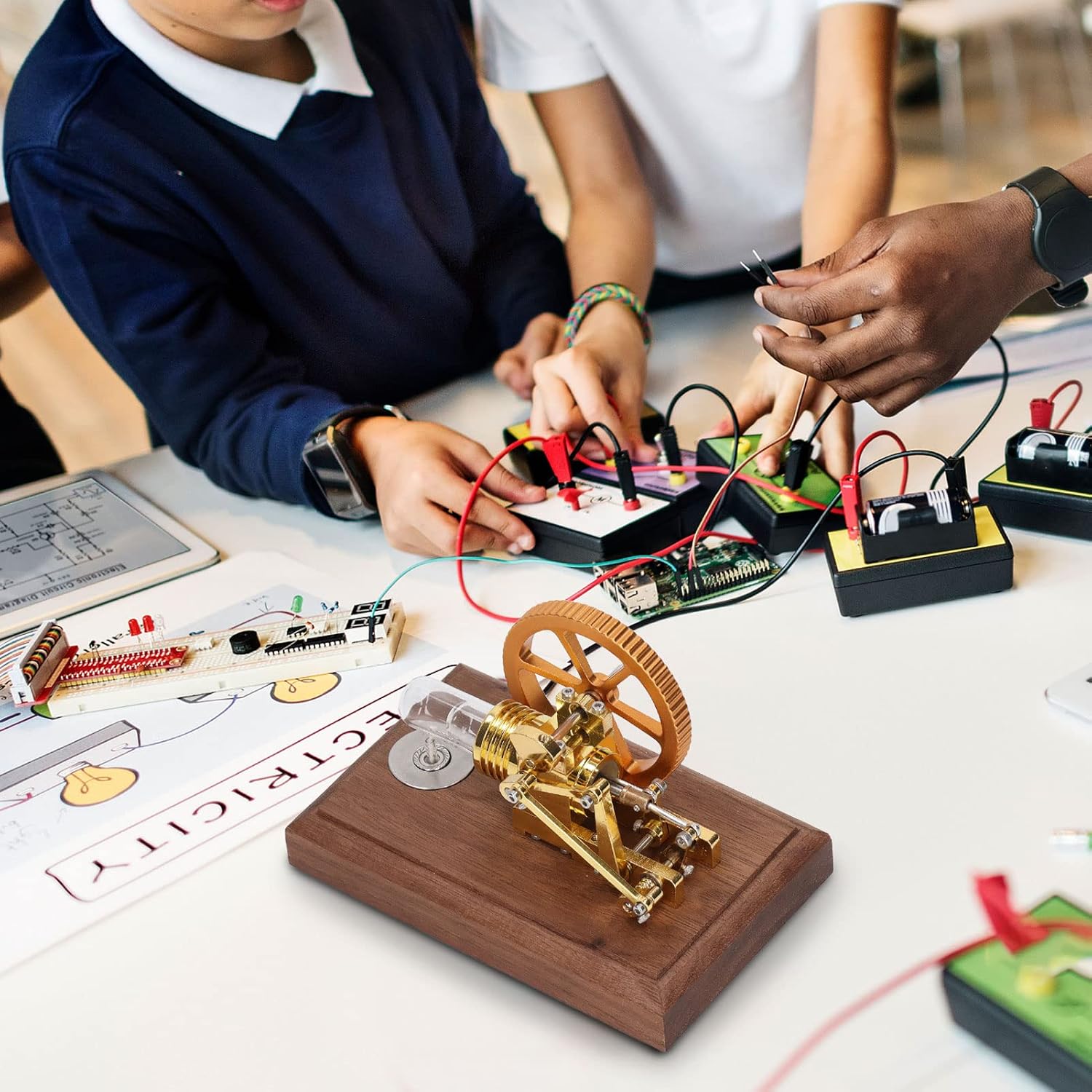 Utilizzo: per azionare questo motore Stirling, posizionare il bruciatore ad alcol sull'estremità del cilindro rotondo. Versare l'alcool al 95%, accendere il bruciatore e lasciarlo bruciare per circa 20 secondi. Quindi, spingere leggermente la ruota per avviare il movimento del motore. Oltre 8 ore di funzionamento continuo: questo generatore con motore Stirling offre prestazioni eccellenti con oltre 8 ore di funzionamento continuo, rendendolo ideale per una varietà di applicazioni. Base in legno: la base dello strumento di apprendimento scientifico è realizzata in legno di alta qualità. Le ricche venature del legno della base aggiungono un tocco di eleganza e nobiltà al design complessivo. Valore educativo: questo dimostratore del ciclo Stirling ha valore educativo e può aiutare gli studenti a comprendere i principi dei motori a combustione esterna e dei motori a vapore. Il suo funzionamento fornisce informazioni sui principi della termodinamica e dell'ingegneria meccanica. APPLICAZIONI MULTIFUNZIONALI: questo strumento di apprendimento scientifico ha molteplici applicazioni. È perfetto per progetti scientifici progettati per insegnare ai bambini la fisica e la meccanica. È ottimo anche per gli insegnanti per presentazioni in classe e come regalo di compleanno unico per amici, familiari, genitori e bambini.