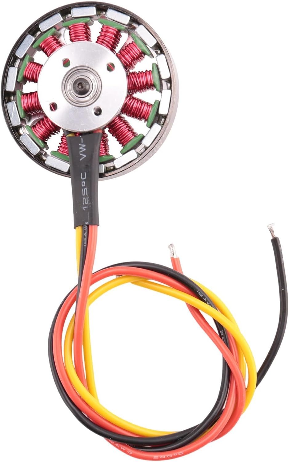 Piastre dello statore rivestite con resina epossidica di alta qualità all'interno per evitare cortocircuiti negli avvolgimenti. ID piastra statore da 0,20 mm per questo motore 5010. I fori di montaggio filettati posteriori con una distanza tra i fori di 16 mm e 19 mm sono adatti per una varietà di applicazioni. Magneti NdFeB ad alta temperatura appositamente progettati per un funzionamento senza problemi. Per avvolgere i motori viene utilizzato un filo con una temperatura di 140 ° C (356 Fahrenheit) per ridurre al minimo il rischio di combustione del motore. Alloggiamento anteriore lavorato con quattro fori per ventole che pompano aria attraverso il motore durante il funzionamento. I cuscinetti a sfera schermati e permanentemente lubrificati di alta qualità controllano l'albero motore di tutti i nostri motori. Gli adesivi ad alta temperatura vengono utilizzati per l'avvolgimento dello statore per evitare che si spostino, si leghino o vadano in cortocircuito.