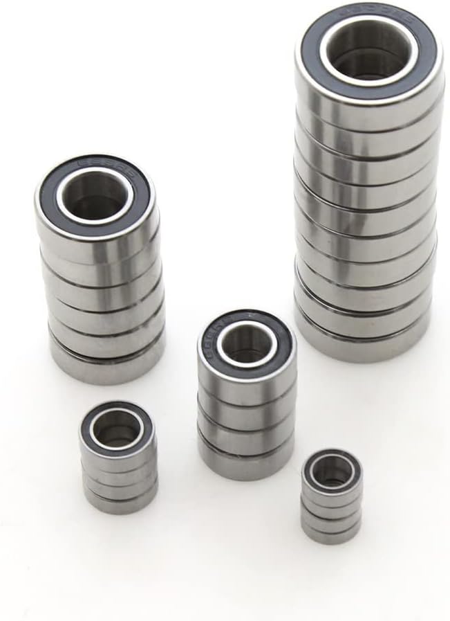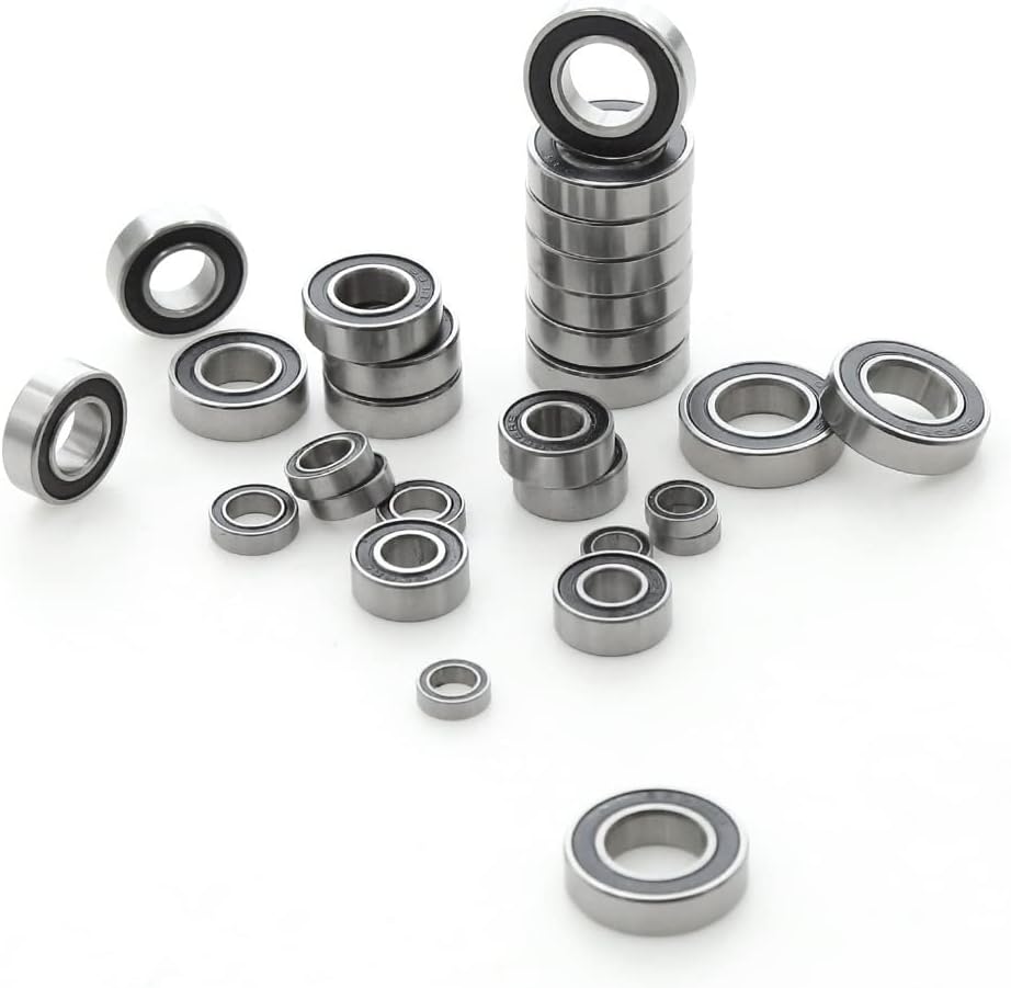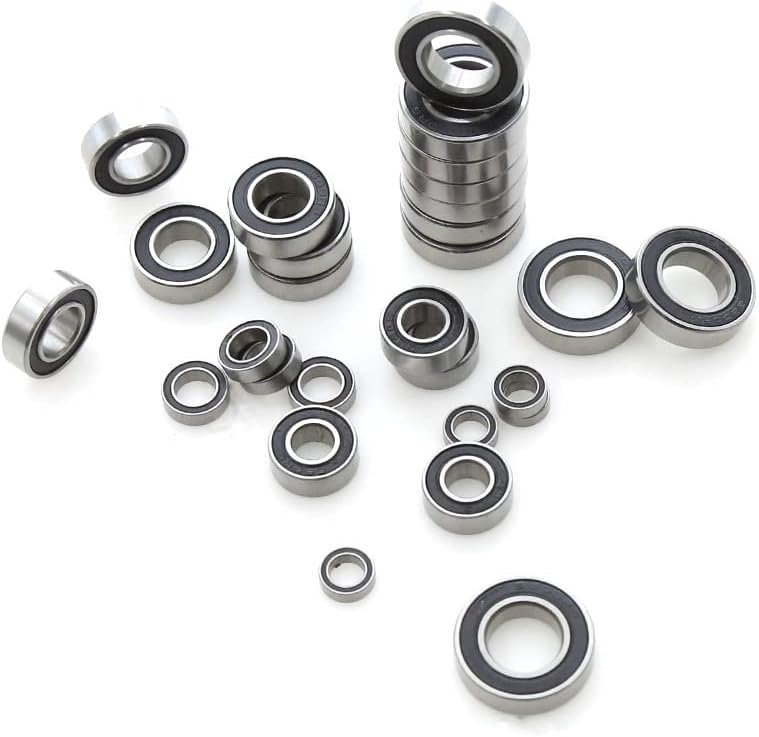 100% nuovo di zecca Questi cuscinetti utilizzano una costruzione in acciaio cromato resistente e collaudata con guarnizioni in gomma su entrambi i lati per tenere a bada sporco e detriti. Sono lubrificati con un grasso di grado marino per rimanere a rotolamento liscio quando il gioco diventa duro. Adatto per TRAXXAS 1/8 4WD SLEDGE Cuscinetto completo del veicolo La confezione include: 4 x 5 x 8 x 2,5 mm, 4 x 6 x 10 x 3 mm, 4 x 6 x 13 x 5 mm, 6 x 8 x 16 x 5 mm, 10 x 10 x 19 x 5 mm