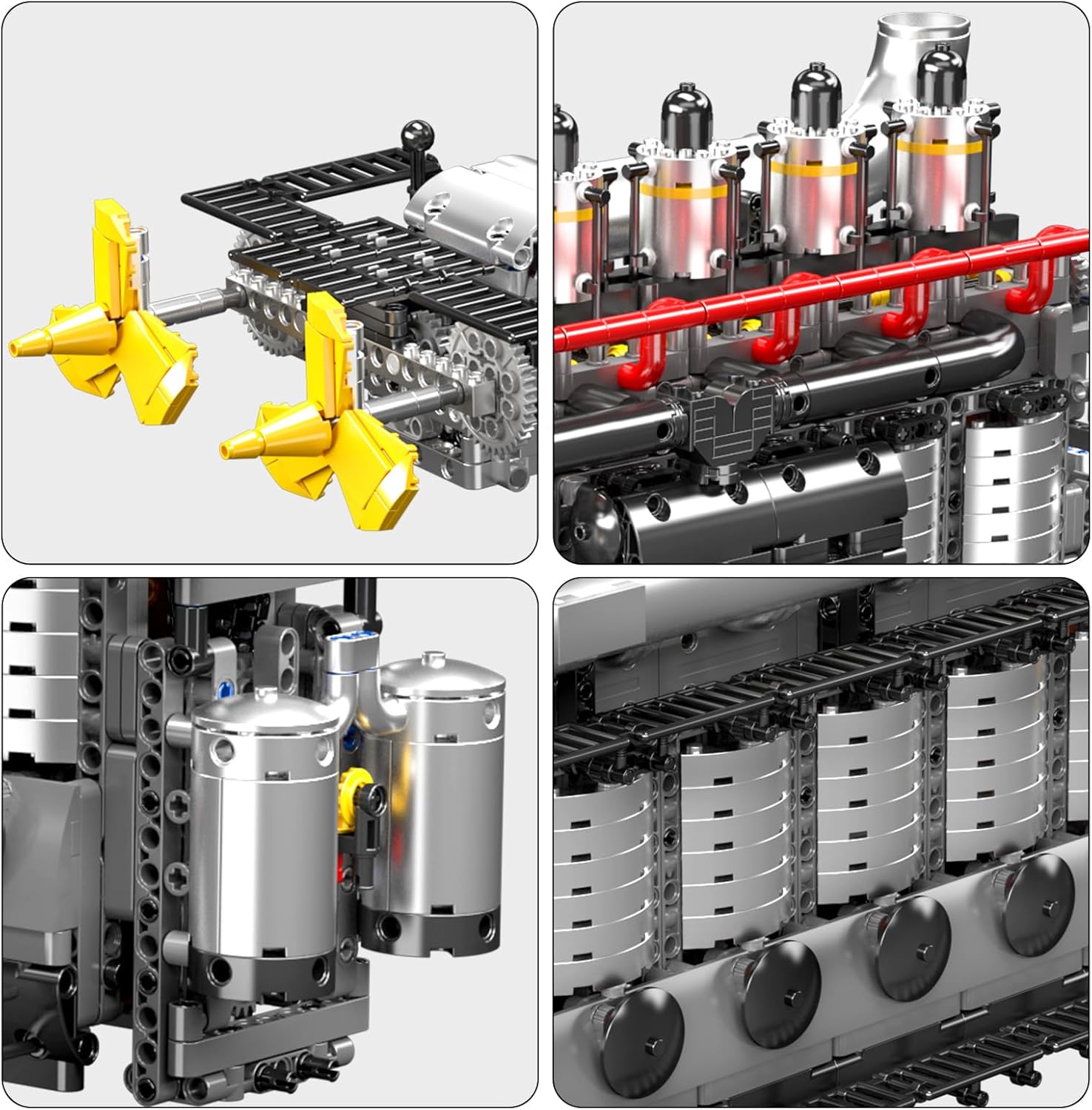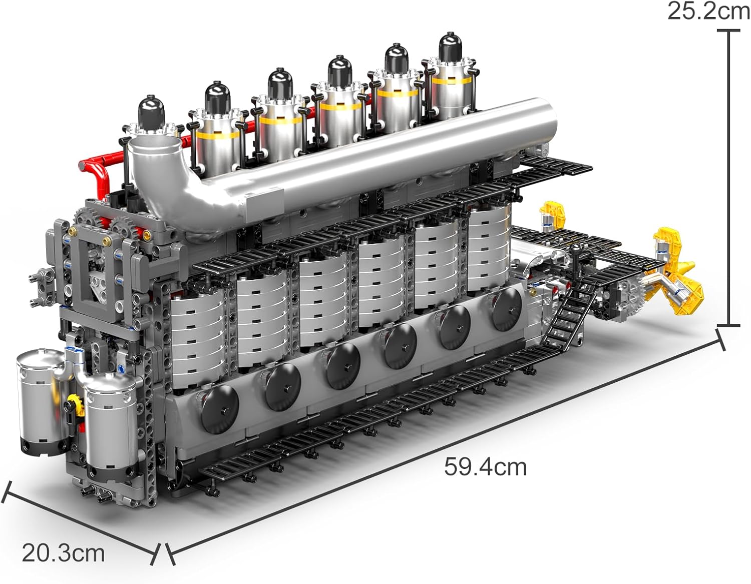 Mold King 10209 Replica elevata della struttura di potenza a sei cilindri Ispirata alla tecnologia di propulsione delle grandi navi, 6 pistoni, bielle dell'albero motore, fasatura delle valvole e gruppi di pulegge sono assemblati come componenti chiave; le testate sono progettate ritmicamente, l'area trasparente sul lato consente una visione diretta dell'intero processo di alternanza, trasmissione e uscita, mettendo in mostra completamente i dettagli meccanici Azionamento elettrico, dimostrazione del collegamento a doppia elica: standard con motore L e custodia batteria, avvio/arresto con un solo pulsante; La potenza viene trasmessa tramite gruppi di ingranaggi e alberi motore, azionando due eliche contemporaneamente, dimostrando chiaramente la catena di potenza dal motore all'elica, ideale per spiegazioni in classe, trasferimento di conoscenze e dimostrazioni da tavolo. 【Giocattoli educativi sulla scienza delle costruzioni】 Il set di giocattoli contiene molti elementi costitutivi, tutti i componenti sono ordinati e accuratamente imballati in modo da non andare persi. Le istruzioni di montaggio sono incluse in modo da poter iniziare con ogni passaggio. Compatibile con la maggior parte degli elementi costitutivi simili sul mercato, con forte scalabilità. Il miglior gioco di apprendimento a casa per tutti. Sarà un bellissimo momento genitore-figlio per giocare con i bambini. 【Il miglior kit educativo】 Questo kit è ottimo per ragazzi e ragazze per San Valentino/Compleanno/Festa del papà, in particolare per bambini, adolescenti, adulti di età pari o superiore a 8, 9, 10, 12, 14 anni e più. Sono coerenti, compatibili, facili da collegare e non si sfaldano facilmente. Ha tutte le caratteristiche desiderabili a un prezzo accessibile ed è perfetto per compleanni/festa dei bambini/Natale/Pasqua. 【Scatola colorata di alta qualità】: se non sei soddisfatto del tuo acquisto, ti offriamo un rimborso di 1 mese. Ciascuno dei nostri prodotti viene prelevato da una macchina e l'imballaggio viene confermato solo dopo aver effettuato tre test. Se nel tuo kit mancano ancora delle parti, contattaci. Ti invieremo le parti mancanti, grazie in anticipo.