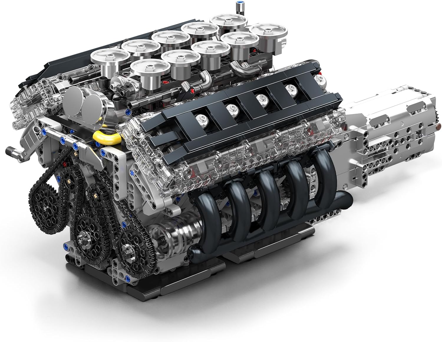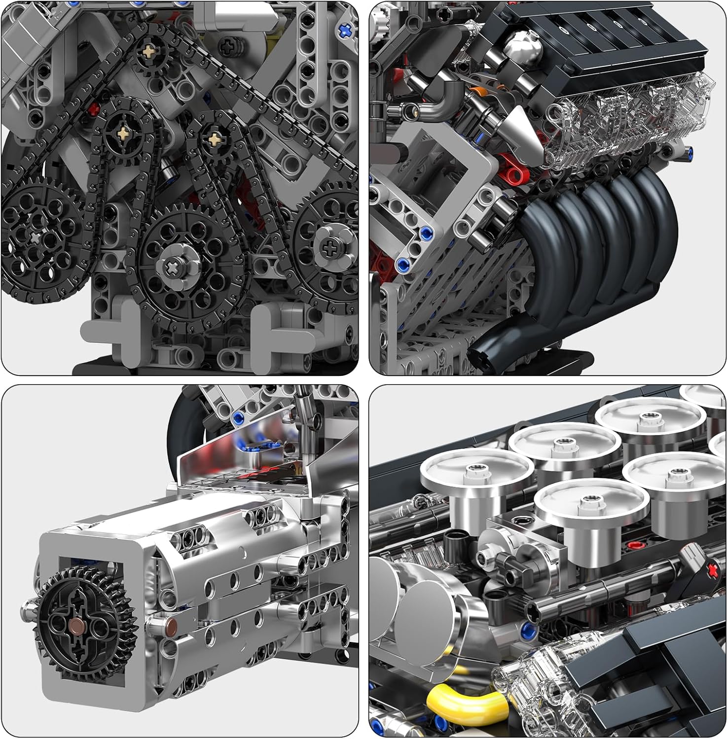 Mould King 10250 Ispirato al classico motore V10 ad alte prestazioni, ricrea completamente i 10 pistoni, albero motore, bielle, albero a camme, fasatura delle valvole e gruppi di pulegge; L'area di osservazione trasparente permette una visione diretta del moto alternativo e della trasmissione, rendendo completamente visibili i dettagli meccanici. Collegamento manuale e dinamica visibile: la manopola rotante sull'alloggiamento aziona l'intero modello, supporta la rotazione avanti/indietro e il controllo della velocità a più stadi e dimostra la connessione stratificata dell'albero motore alla fasatura della valvola e della cinghia alla ventola. Quando si gira la manopola di controllo laterale, l'albero motore muove le bielle, i 10 pistoni si muovono avanti e indietro in sequenza, i gruppi albero a camme e cinghia lavorano insieme e la ventola e gli accessori funzionano in sincronia, dimostrando l'intera catena operativa di un motore V10 ad alte prestazioni. 【Il miglior kit educativo】 Questo kit è ottimo per ragazzi e ragazze per San Valentino/Compleanno/Festa del papà, in particolare per bambini, adolescenti, adulti di età pari o superiore a 8, 9, 10, 12, 14 anni e più. Sono coerenti, compatibili, facili da collegare e non si sfaldano facilmente. Ha tutte le caratteristiche desiderabili a un prezzo accessibile ed è perfetto per compleanni/festa dei bambini/Natale/Pasqua. 【Scatola colorata di alta qualità】: se non sei soddisfatto del tuo acquisto, ti offriamo un rimborso di 1 mese. Ciascuno dei nostri prodotti viene prelevato da una macchina e l'imballaggio viene confermato solo dopo aver effettuato tre test. Se nel tuo kit mancano ancora delle parti, contattaci. Ti invieremo le parti mancanti, grazie in anticipo.