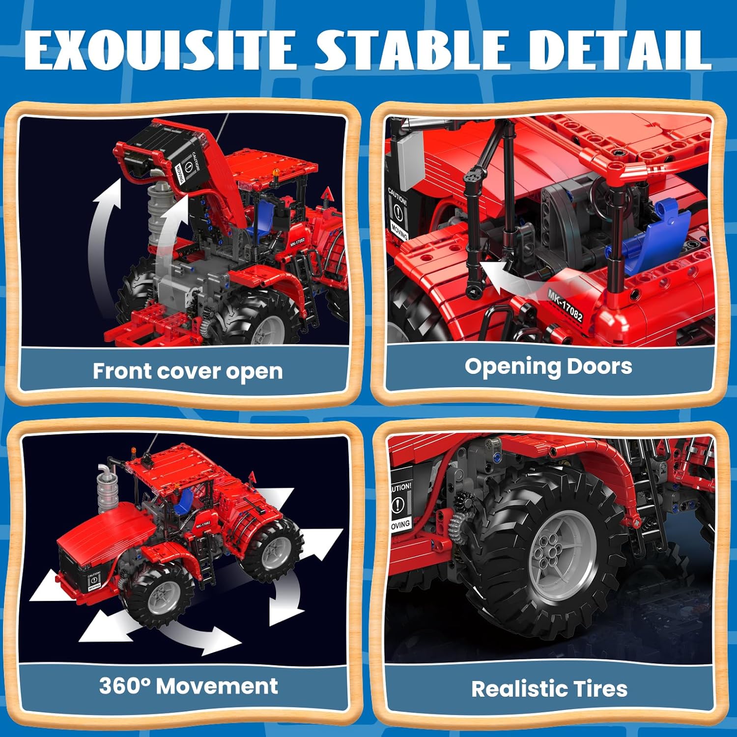 【Trattore telecomandato】: i giocattoli agricoli telecomandati sono dispositivi meccanici utilizzati nella produzione agricola per compiti come estrazione del campo, preparazione del terreno, semina, raccolta e trasporto. I giocattoli da costruzione del trattore funzionano in modo così realistico e una varietà di gameplay sono liberamente controllabili, in modo che gli appassionati della macchina agricola abbiano più divertimento. 【Design eccellente】: questo kit per modellino giocattolo telecomandato con app, composto da 1300 pezzi, dimensioni: 37,3 × 17,9 × 28,1 cm. Questo splendido giocattolo da costruzione per veicoli agricoli è stato progettato per offrire un'esperienza di costruzione impegnativa esplorando dettagli e funzioni di design accurati. 【Funzione telecomando app】: i mattoncini giocattolo telecomandati da trattore utilizzano un motore ad alte prestazioni e un chip intelligente e supportano due modalità di funzionamento del telecomando Bluetooth: telecomando manuale e app per cellulare. Può eseguire curve in avanti, indietro, sinistra e destra, può muoversi agevolmente in tutte le direzioni, sia su terreno pianeggiante che irregolare. 【Materiale di sicurezza】: realizzato con materiali ABS ecologici e sicuri e materie prime naturali, sicure e innocue. il costruito a distanza mietitrebbia giocattoli hanno una struttura solida e sono vicini alla realtà. Allo stesso tempo, è anche perfettamente compatibile con tutti i mattoncini di marca sul mercato. 【Qualità post-vendita】: regalo ideale per adulti di 14+ anni. Eseguiamo vari test durante il processo di produzione per garantire la qualità del prodotto. Se durante il processo di installazione ti mancano accessori, ti preghiamo di contattare Mould King e ti invieremo gli accessori mancanti