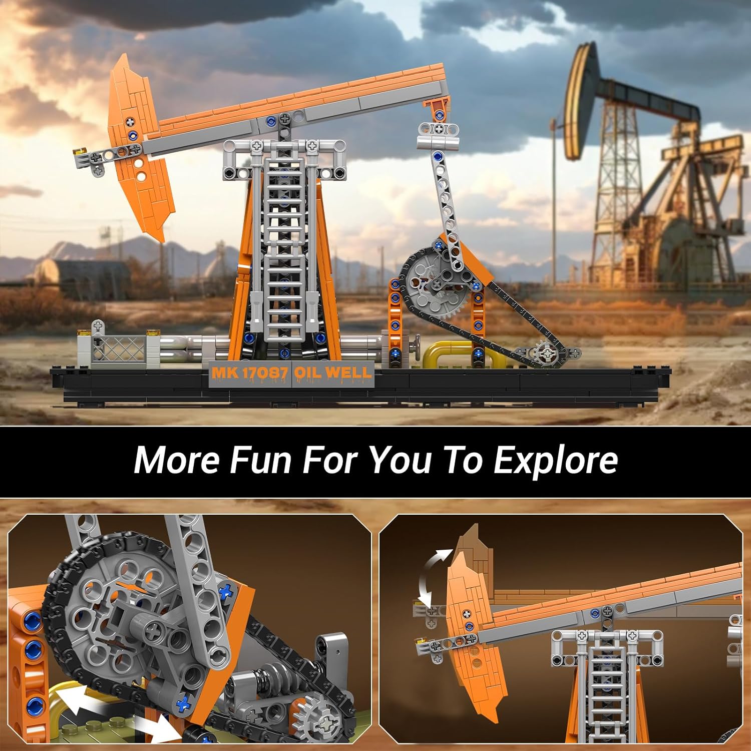 Modello a blocchi creativo: il modello del giacimento petrolifero contiene molti dettagli realistici e rappresenta la struttura meccanica di un vero trasportatore. Dotato di una trave mobile della pompa e di un sistema di azionamento, trasmette il fascino industriale dell'estrazione del petrolio. La trave della pompa può muoversi su e giù, mentre il sistema di trasmissione a catena simula il processo di lavoro di un vero giacimento petrolifero. Montaggio semplice e facile: modello giocattolo con fonte di petrolio con oltre 840 piccoli accessori. Allo stesso tempo sono allegate dettagliate istruzioni di montaggio (lingua italiana non garantita), molto dettagliate e di facile comprensione. Non è solo un giocattolo modellabile a blocchi molto creativo, ma ti consente anche di scoprire nuove conoscenze scientifiche e tecnologiche. Giocattolo ideale: il modello giocattolo a blocchi è stato progettato per offrire alle persone esperienze interessanti e stimolanti. Gli accessori sono altamente compatibili. Compatibile con la maggior parte dei blocchi sul mercato ed espandibile, puoi utilizzare questo accessorio per assemblare i tuoi blocchi preferiti. Ottima idea regalo: il kit modello di blocchi di trivellazione petrolifera è adatto anche a ragazzi e ragazze dai 14 anni in su. Come regalo di compleanno, festa dei bambini, Natale, Capodanno, Pasqua, campo estivo, ritorno a scuola, ecc. Se hai bisogno di un regalo, questo modello è una buona scelta. Servizio clienti: il kit di blocchi tecnologici per il giacimento petrolifero è realizzato in materiale di alta qualità. Se riscontri problemi durante l'installazione o l'utilizzo del prodotto, non esitare a contattarci