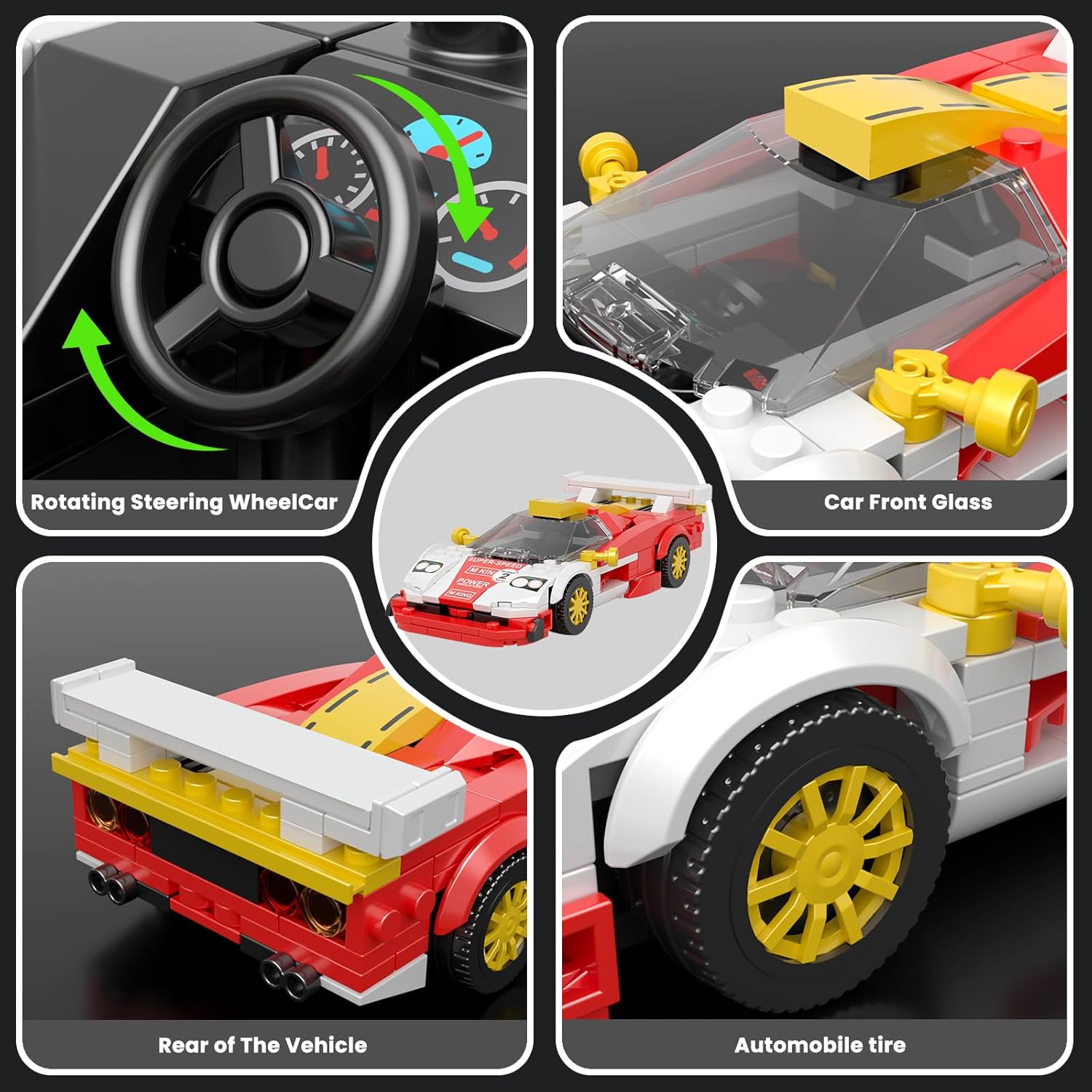 【Costruzioni auto sportive】: questo kit di modellino auto MC è confezionato singolarmente, completo di pneumatici, adesivi simulati in fibra di carbonio e vetrina. Inoltre, sono incluse istruzioni dettagliate che sono facili da capire e costruire 【Design eccellente】: questo mattoncini da costruzione supersport è composto da 385 pezzi, dimensioni: 16,4 × 7,9 × 4,5 cm. Questo splendido modello di auto è stato progettato per offrire un'esperienza di costruzione impegnativa esplorando dettagli e funzionalità di design accurati 【Auto da corsa con vetrina】: Una vetrina è appositamente configurata in cui l"auto può essere posizionata da mattoncini impiombati, se possiedi molte delle nostre auto da corsa in mattoncini puoi combinare le vetrine per creare una serie di giocattoli da costruzione a livello da collezione. Allo stesso tempo, è anche perfettamente compatibile con tutti i mattoncini di marca sul mercato 【Materiale di sicurezza】: realizzato con materiali ABS ecologici e sicuri e materie prime naturali, sicure e innocue. I blocchi di bloccaggio per auto hanno una struttura solida e sono vicini alla realtà. Può proteggere meglio la sicurezza dei bambini quando si divertono a costruire giocattoli Fantastica idea regalo: il nostro Mould King Speed Champion è perfetto per il legame genitore-figlio! Trascorri un bel tempo insieme creando ricordi che durano tutta la vita. Se durante il processo di montaggio vi mancano degli accessori, si prega di contattare Mould King e vi invieremo gli accessori mancanti gratuitamente