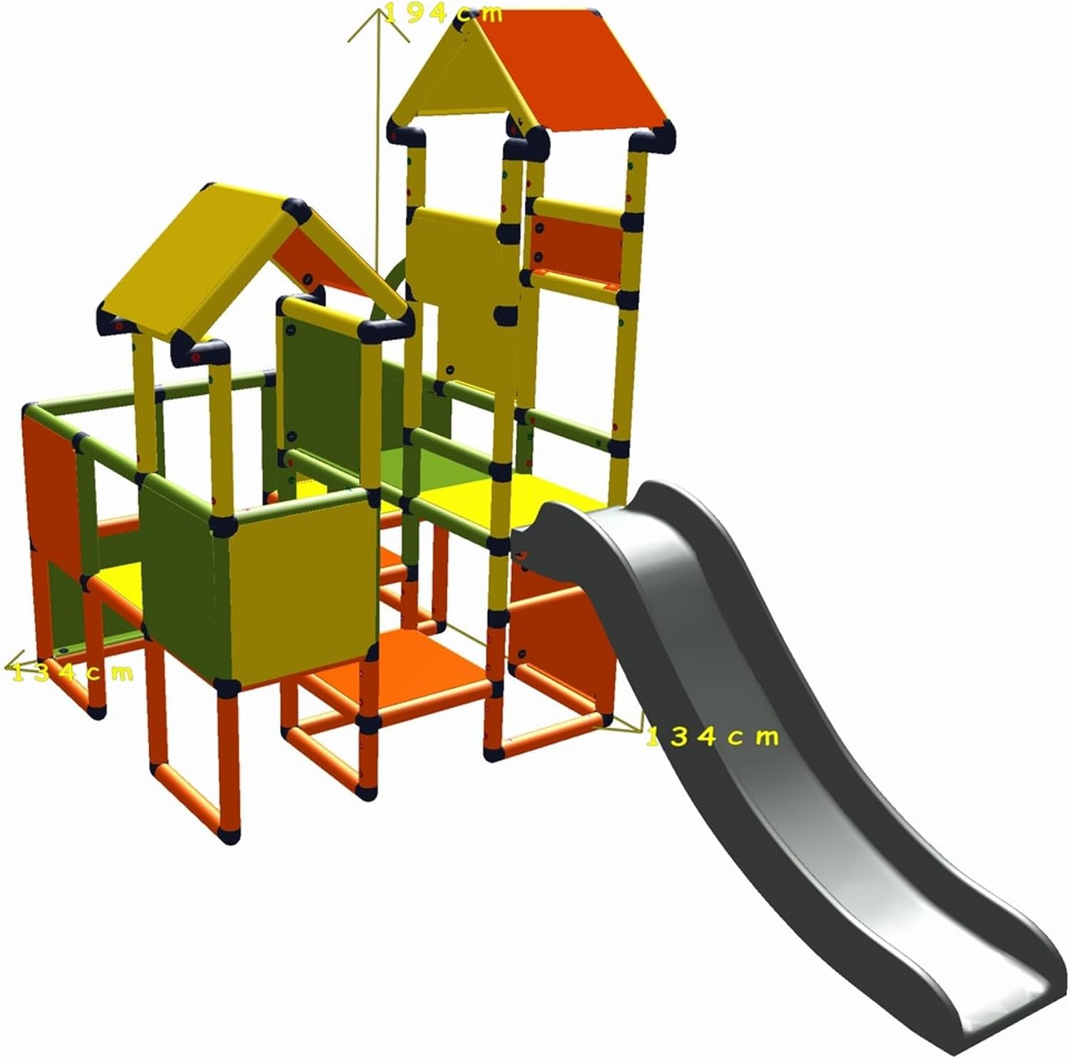 Con le sue due torri e molte marce, Moritz invita a giocare e scoprire. Sia come cavaliere che come castello, qui i piccoli possono dare libero sfogo alla propria fantasia. Uno scivolo colorato garantisce un divertimento ancora maggiore. Lo scivolo ha un'altezza di 60 cm. Dimensioni: 2,65 x 1,36 x 1,94 m