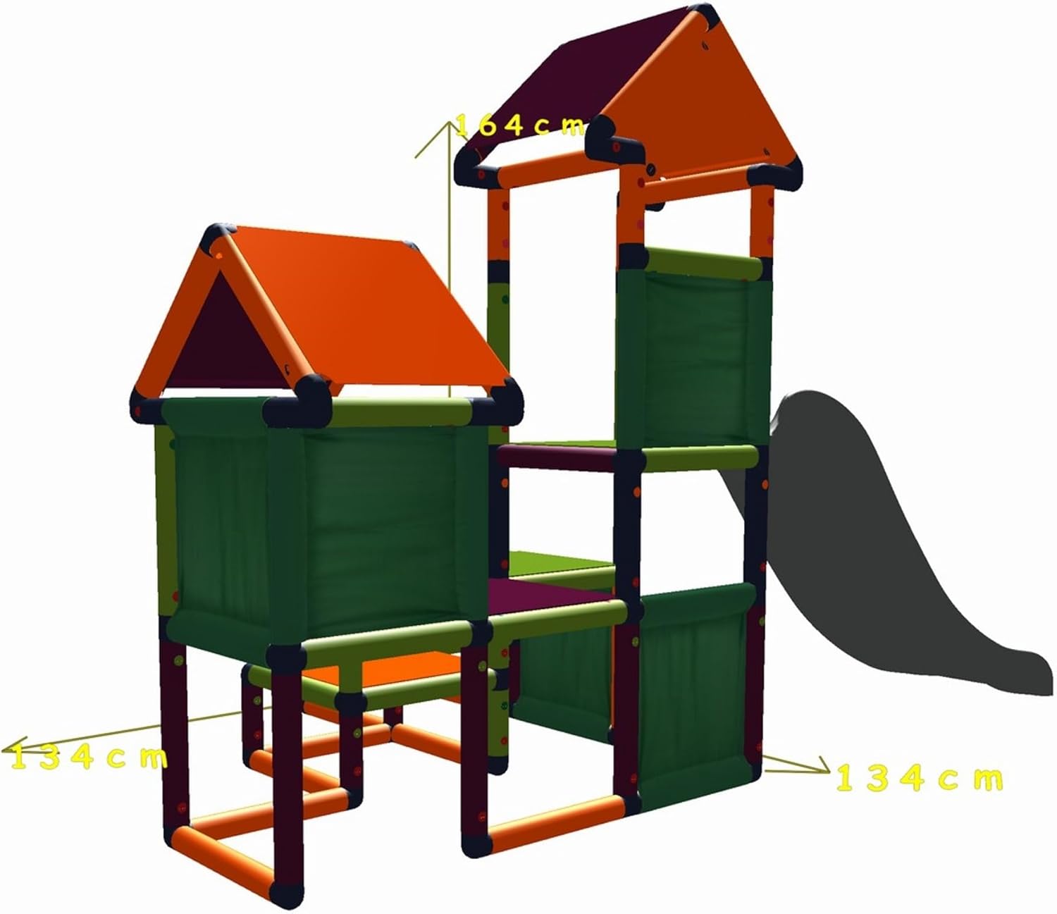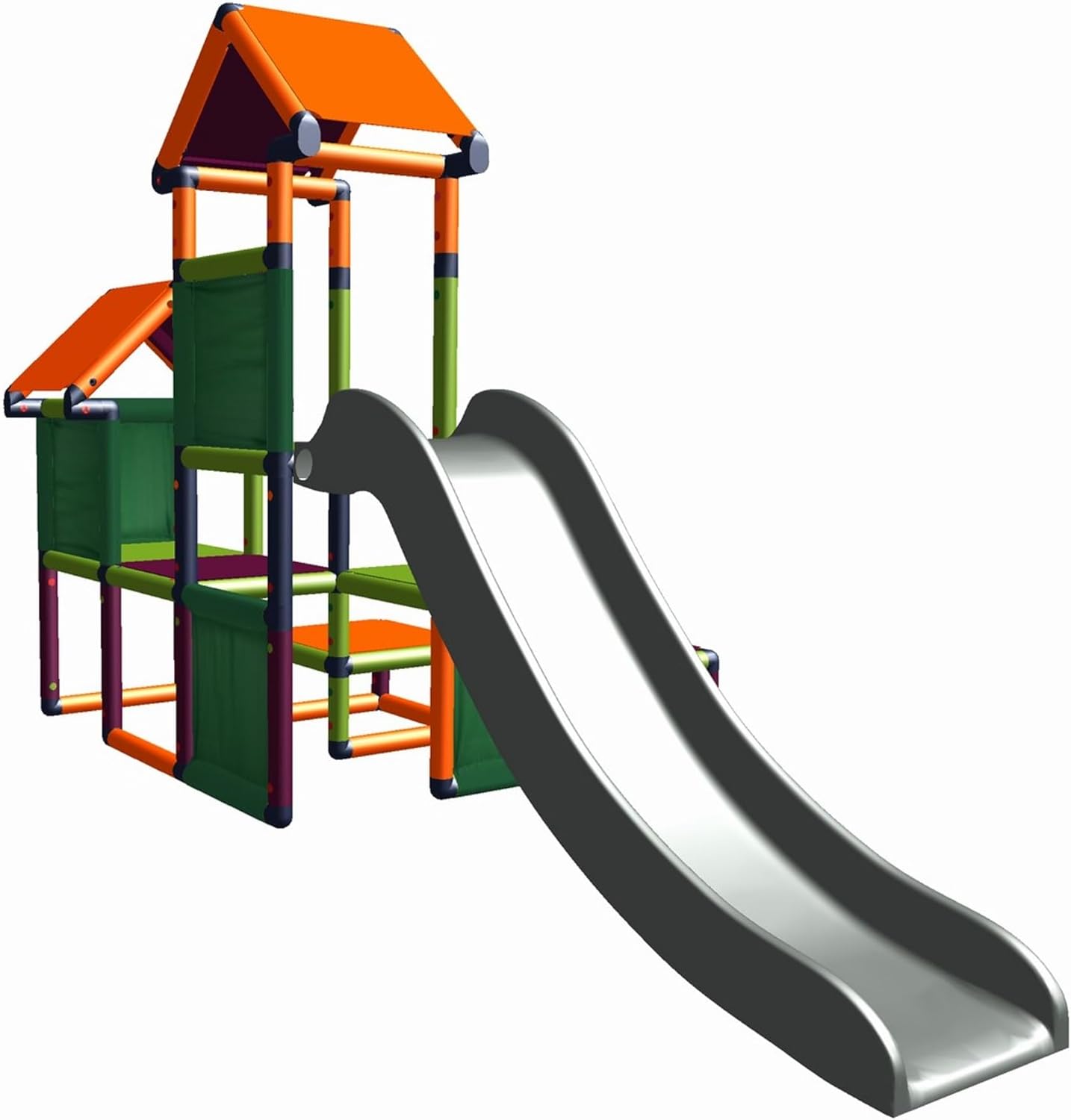 Move and stic - Kit di costruzione GESA: torre di gioco e arrampicata con scivolo Un sacco di nascondigli e tante varianti di arrampicata, che è molto adatto per la promozione delle capacità motorie. Qui il nostro team ha fatto in modo che le differenze di altezza delle piattaforme corrispondano alla difficoltà più facile, in modo che anche i più piccoli possano affrontare rapidamente nuove sfide. Naturalmente, come tutte le scatole di costruzione MoveAndStic, questa torre può essere facilmente ampliata e ingrandita. Dimensioni (lunghezza x altezza x larghezza): 2,65 x 1,64 x 1,34 m. Attenzione: questo modello viene fornito con scivolo grigio Tutte le parti Move and Stic sono realizzate in plastica riciclabile e resistente ai raggi UV di alta qualità, sono robuste, resistenti e adatte sia per interni che esterni. Costruire con Move and Stic è semplicissimo: le parti vengono semplicemente collegate e fissate con speciali fusibili. Grazie al design modulare, le costruzioni esistenti possono essere cambiate in nuove in qualsiasi momento e sono adattabili a qualsiasi situazione di spazio. Tutti i componenti Move and Stic sono disponibili anche singolarmente. Nota: i colori dei componenti mostrati nelle immagini possono variare con quelli forniti a causa delle scorte!