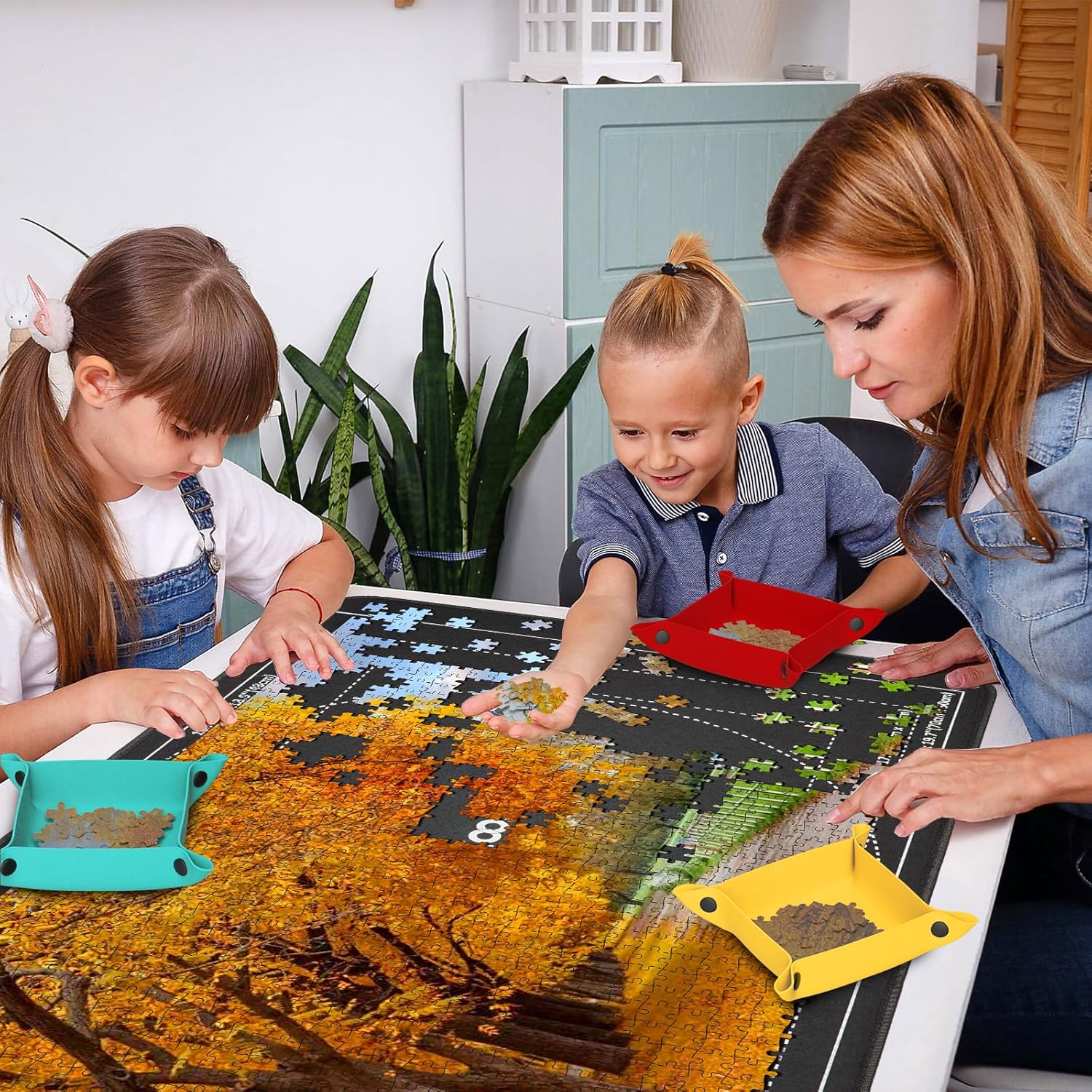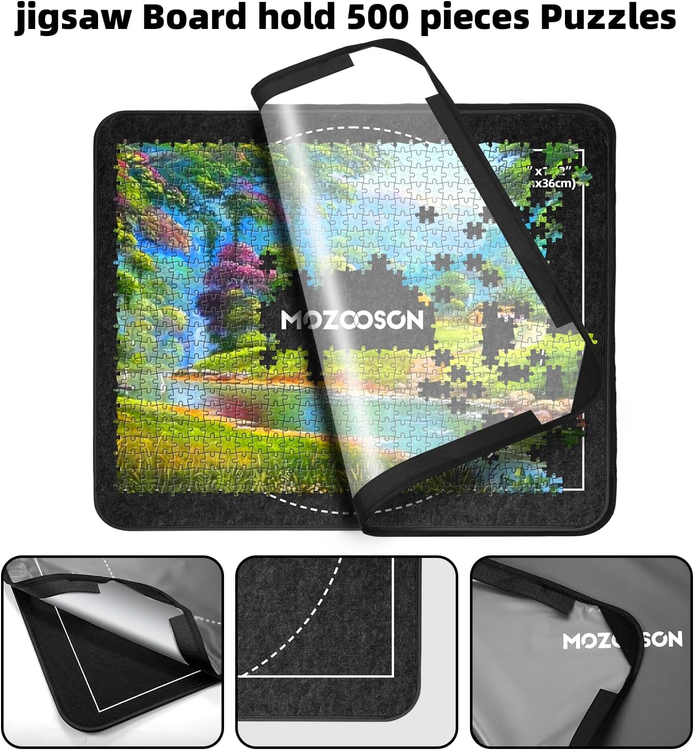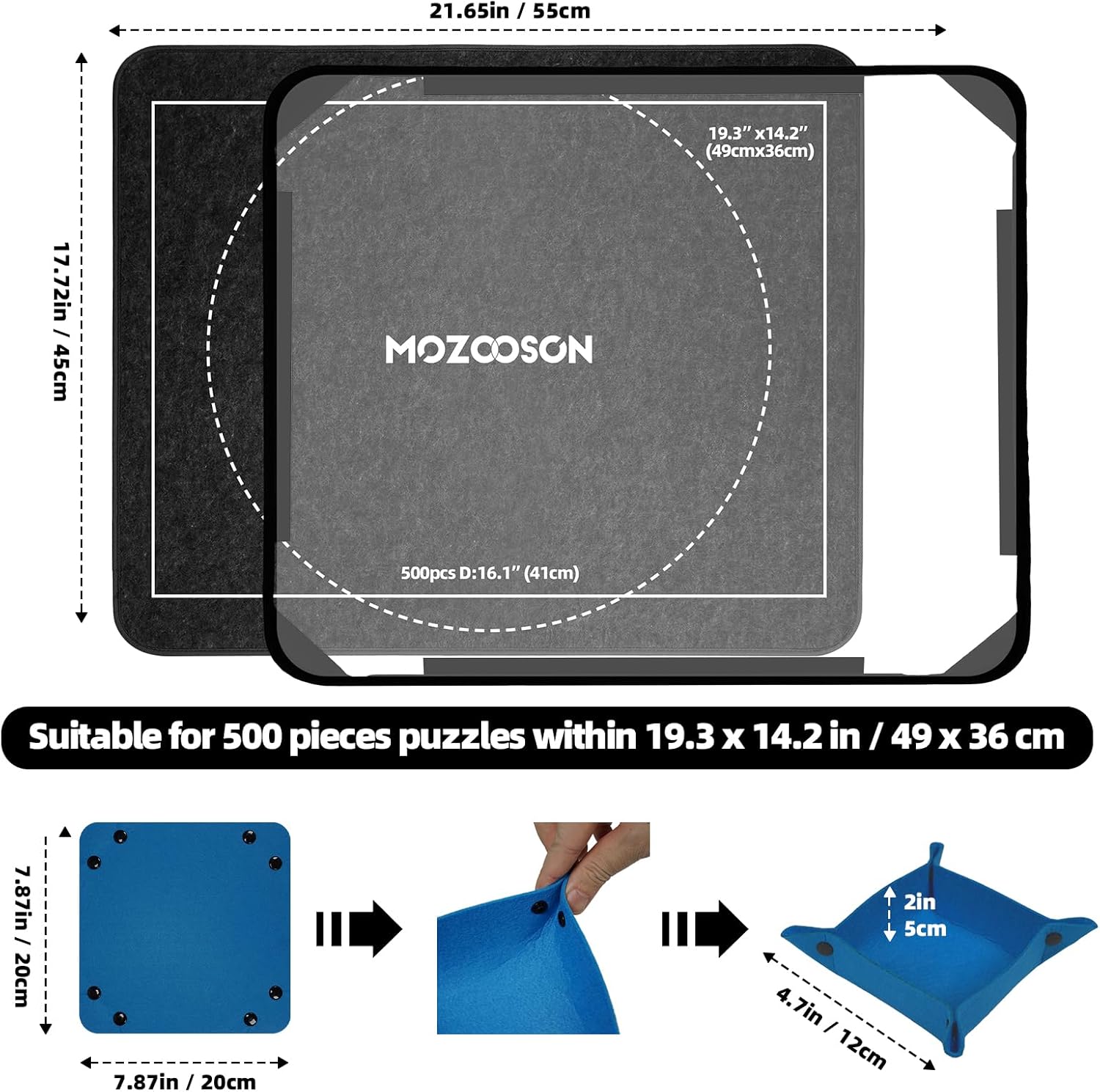 1. Tappetino per puzzle in feltro antiscivolo: Il tappetino per puzzle MOZOOSON utilizza feltro di alta densità premium che può ospitare in modo sicuro puzzle da 500 pezzi. La superficie imbottita protegge i pezzi del puzzle dai graffi, mentre la grana testurizzata del feltro impedisce efficacemente lo spostamento accidentale dei pezzi durante il montaggio 2. Design astuto della copertura antipolvere: La copertura antipolvere aggiornata presenta un sistema di chiusura a strappo su tutti e quattro i bordi del tappetino per puzzle, impedendo ai pezzi di scivolare durante il movimento. Questo design pratico protegge efficacemente il tuo capolavoro del puzzle da polvere, umidità e interferenze degli animali domestici 3. Sei vassoi per la selezione dei puzzle: Il tappetino per puzzle include 6 vassoi per la selezione dei puzzle dai colori vivaci che possono essere staccati e appiattiti per una conservazione compatta. Basta chiudere gli automatici integrati per trasformarli in robusti scomparti per la conservazione - perfetti per mantenere i pezzi del puzzle organizzati durante il montaggio 4. Tappetino per puzzle leggero ma resistente: Il nostro tappetino per puzzle da 500 pezzi misura 22x18 pollici ( 55x45 cm ) e pesa solo 510 grammi - accessori per puzzle eccezionalmente portatili e resistenti 5. Soluzioni complete per i puzzle: MOZOOSON è specializzato nello sviluppo di accessori per varie dimensioni di puzzle. La nostra gamma include tappetini per puzzle di diverse dimensioni, vassoi premium per la selezione dei puzzle, libri per la conservazione dei puzzle e tappetini per puzzle in feltro. Per qualsiasi domanda, non esitare a contattarci