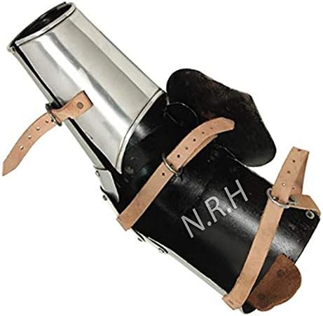 Set di armature per armi italiane del XV secolo, prontezza al combattimento medievale, argento. Dimensioni: lunghezza totale: 16 pollici ciascuno/lunghezza del braccio superiore: 6 pollici. Lunghezza dell'avambraccio: 7,5 pollici. Colore: argento. Materiale: acciaio calibro 18.