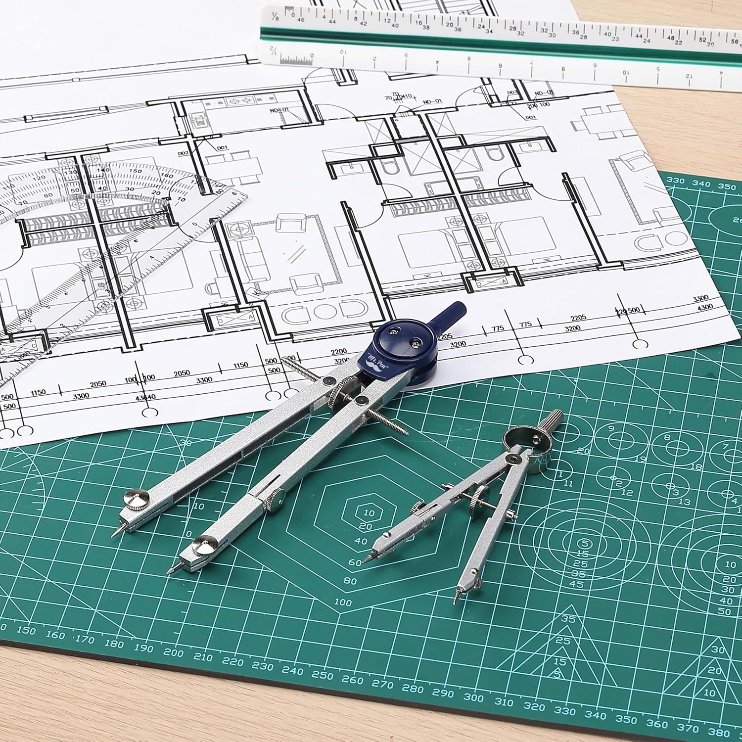 La confezione comprende 2 bussole professionali di alta qualità, una prolunga, accessori intercambiabili e una maniglia scorrevole per penne, matite, stilo o pennarelli. Ideale per matematica, geometria, arte, disegno e disegno, crea cerchi fino a 20 pollici di diametro Bussola geometrica di precisione con testa caricata a molla e ruota centrale per evitare movimenti involontari delle gambe Confezionato in una scatola trasparente riutilizzabile. Facile da trasportare e riporre