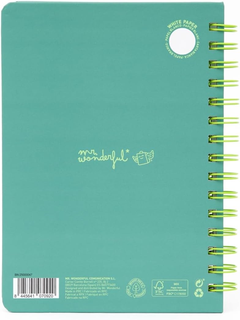 Quaderno A5 pensato per accompagnarti ovunque con buon umore. Rilegatura ordinata, stile di design allegro: motivazione su ogni pagina. Formato A5 compatto, carta di qualità per prendere appunti senza problemi. Adatto per ufficio, casa e lezioni. Idea regalo positiva e stimolante, spirito Mr. Wonderful.