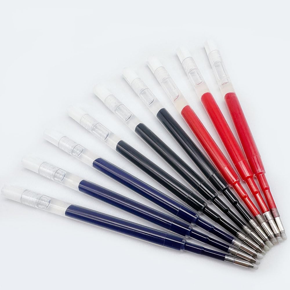 Ricariche di penna massicce, combinazione di grande valore Il set include 20 steli per penne per sostituire le ricariche di penna, con altissima convenienza, soddisfare esigenze di scrittura a lungo termine e adatto per l'uso in più scenari come ufficio, scuola e casa. Il nucleo della penna è lungo 99 mm, resistente e di lunga durata, con una capacità di scrittura di gran lunga superiore a quella dei normali nuclei della penna, riducendo il problema di frequenti sostituzioni. Tre opzioni di colore, commutazione flessibile Fornisce tre colori classici di nero, rosso e blu per soddisfare facilmente diverse esigenze di scrittura: Nero: note giornaliere, firma documento; Rosso: enfatizzare e correggere le assegnazioni; Blu: Record creativi, tag di classificazione. Compatibile con standard G2, ampiamente adattabile Adottando il design del nucleo della penna a sfera con specifiche G2, è compatibile con la stragrande maggioranza dei portapenne standard G2 sul mercato (come portapenne MROOFUL e altre marche tradizionali), facile da sostituire e non richiede strumenti aggiuntivi. La formula del nucleo della penna a base d'acqua garantisce una scrittura fluida e fluente, un'asciugatura rapida dell'inchiostro senza sbavature e mantiene la carta pulita. Qualità professionale, uscita stabile Il nucleo della penna adotta inchiostro di alta qualità e punta della penna di precisione, con uscita uniforme dell'inchiostro e linee delicate, evitando problemi di rottura dell'inchiostro e perdite, garantendo una scrittura continua per un lungo periodo di tempo. La punta della penna è resistente all'usura, resistente alle cadute e durevole, adatta per scenari di utilizzo ad alta intensità. Essenziale per ufficio e studio, adatto per molteplici scenari. Questo set di ricariche per penne offre un'esperienza di scrittura stabile e affidabile per appunti degli studenti, lavoro in ufficio, verbali di riunione e conti domestici. Design indipendente, ricariche per penne ben conservate per un facile trasporto e gestione della classificazione, rendendolo una scelta ideale per un apprendimento e un lavoro efficienti!