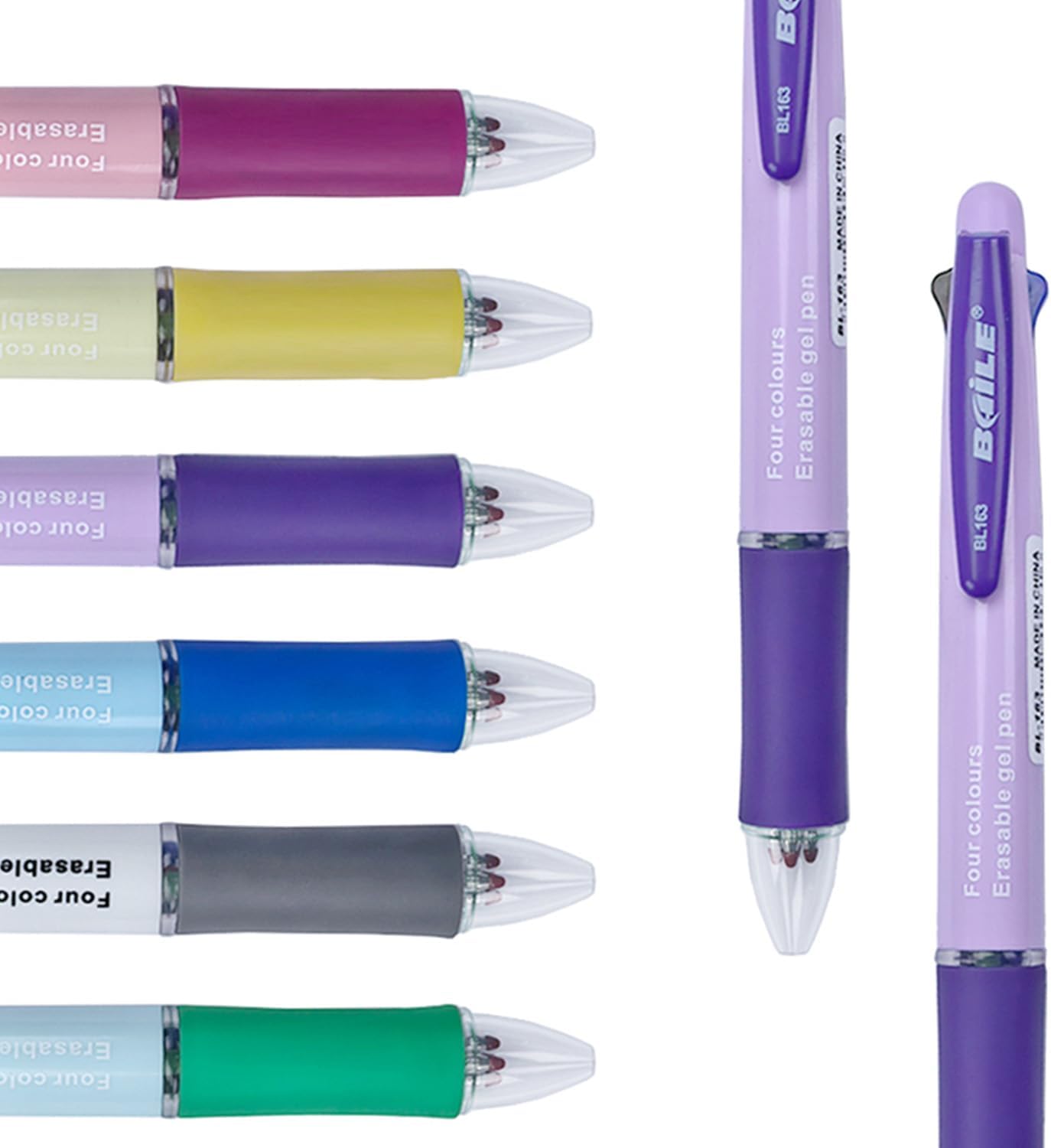 Quantità e configurazione abbondanti: con 6 penne a sfera quattro in una volta, può soddisfare le esigenze di più persone che utilizzano contemporaneamente o per il backup in vari scenari. Dotato di 10 ricariche di ricambio, prolunga notevolmente il ciclo di utilizzo e riduce il fastidio di acquisti ripetuti. Inoltre, vengono fornite due gomme, garantendo un supporto sufficiente per la correzione degli errori. Comoda funzione quattro in una: ogni penna consente di passare liberamente tra ricariche di colore diverso, gestendo facilmente una varietà di esigenze di scrittura. Sia che si tratti di utilizzare colori diversi per distinguere i punti chiave mentre si prendono appunti o si segnano parti diverse quando si disegnano grafici, una penna può realizzare tutto, migliorando l'efficienza di scrittura. Caratteristica unica cancellabile: l'inchiostro nelle ricariche della penna è cancellabile. Gli errori di scrittura possono essere facilmente cancellati senza lasciare tracce. Per gli studenti durante la revisione dei compiti o gli impiegati durante la regolazione dei documenti, può mantenere la pagina pulita ed evitare l'impatto sull'estetica e la leggibilità causato da ripetuti scarabocchi. Esperienza di scrittura di alta qualità: l'inchiostro nelle ricariche della penna scorre senza intoppi, scrivendo senza inchiostro - rottura, rendendo il processo di scrittura senza sforzo e naturale. Accoppiato con una comoda impugnatura a penna, non è facile causare affaticamento anche con una scrittura a lungo termine, fornendo agli utenti una piacevole esperienza di scrittura. Pratici accessori bonus: le due gomme sono altamente compatibili con l'inchiostro cancellabile, in grado di cancellare con precisione la scrittura a mano senza danneggiare facilmente la carta. Se accoppiate con le penne a sfera, che siano collocate in uno zaino, una valigetta o su una scrivania, possono fornire comodità per scrivere in qualsiasi momento.
