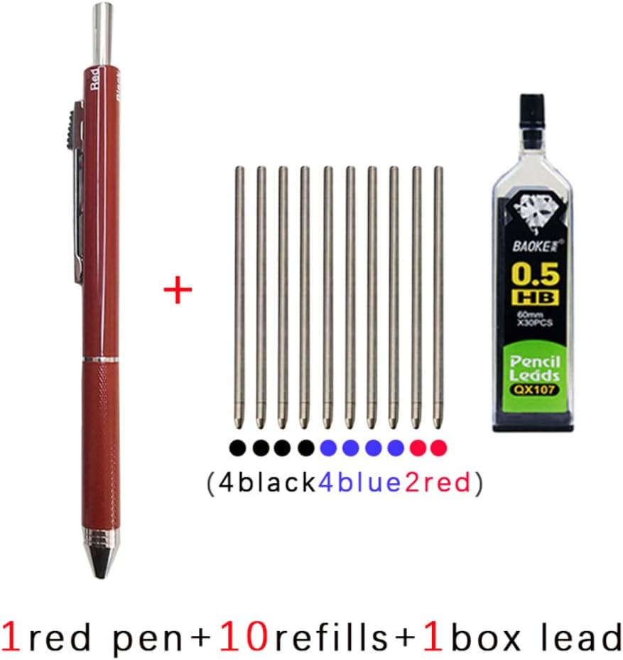 Elenco prodotti: set = 1 penna in metallo + 1 scatola rossa in metallo + 1 scatola di mine + 10 ricariche (4 nero + 4 blu + 2 rosso) Inchiostro: ricariche per penna a sfera in 3 colori (nero/blu/rosso, 0,5 mm), 1 mina automatica a colori (mina da 0,5 mm) Come usare l'interruttore di ricarica: in primo luogo, selezionare il colore che si desidera scrivere (come il blu), mantenere la parola inglese blu nella direzione verso l'alto, quindi il colore della sua scrittura sarà blu, allo stesso modo per cambiare altri colori. Differenza: questa non è la stessa della normale penna a sfera multicolore, è una penna sensibile alla gravità Ampie applicazioni: cancelleria necessaria per uso domestico, forniture per ufficio, necessità in classe, gli utenti possono applicarla per scrivere, dipingere, disegnare, firmare, può anche essere un piccolo regalo e ricompensa per i bambini