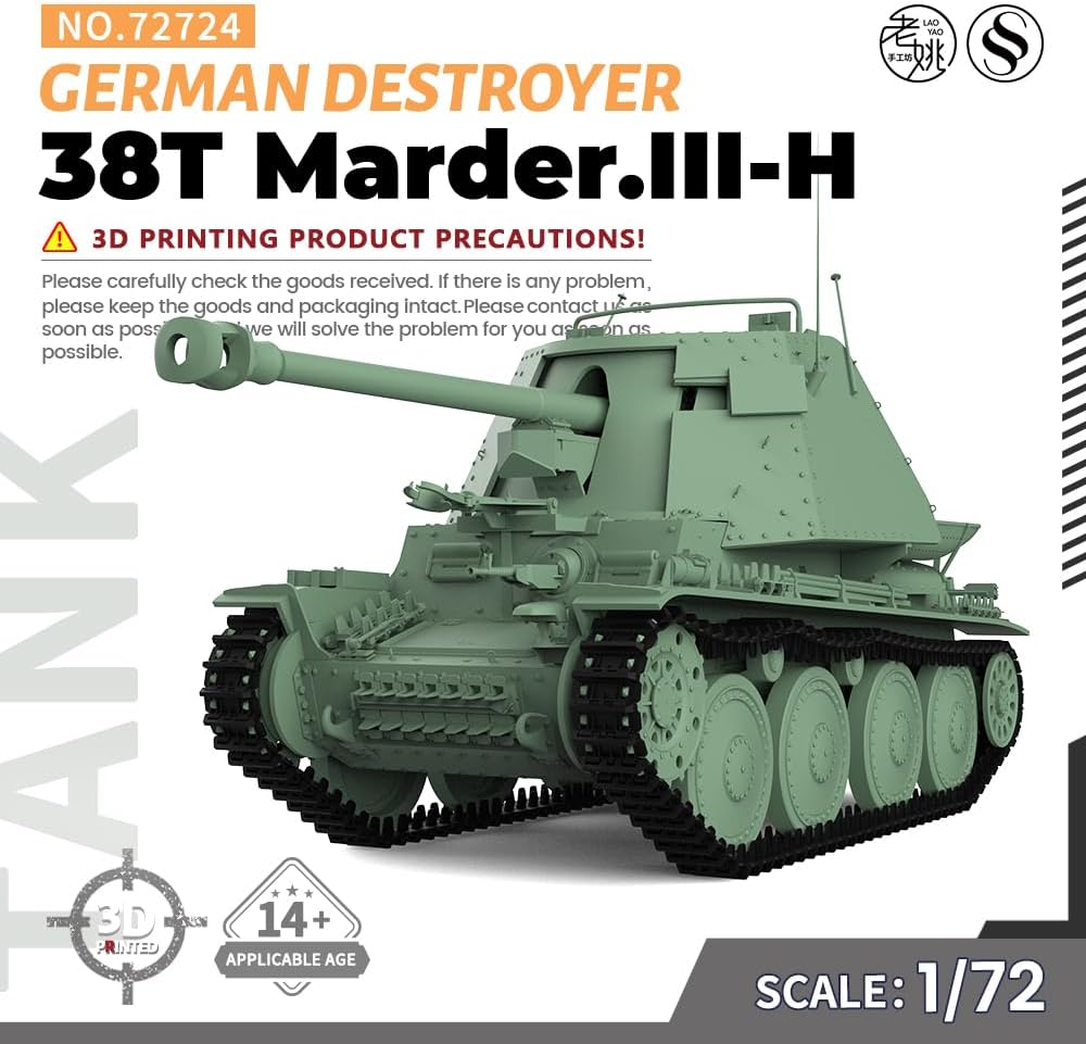 SSMODEL SS72724 Kit modello militare 1/72 25mm Tedesco 38T Marder.III-H Rapporto cacciatorpediniere: 1/72 Caratteristiche: Non dipinto Tema: Militare Materiale: Resina verniciata 3D