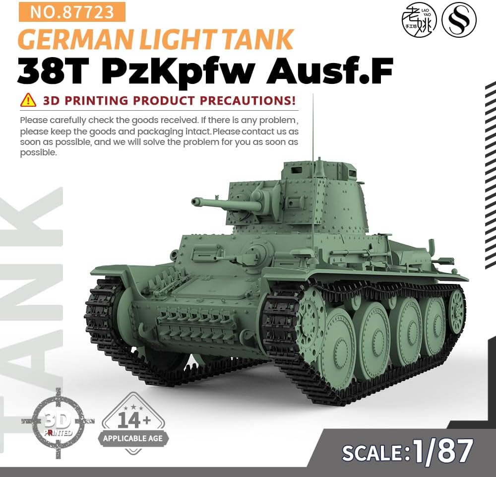 Kit modello militare scala HO German 38T PzKpfw Light Tank Ausf.F Rapporto: 1/87 Caratteristiche: Non dipinto Tema: Militare Materiale: resina verniciata 3D