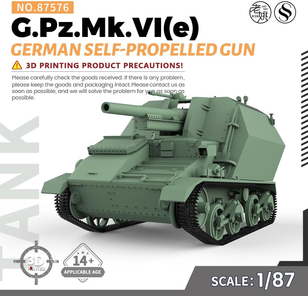 Kit modello militare ferroviario in scala HO Tedesco G.Pz.Mk.VI (e) Rapporto pistola semovente: 1/87 Caratteristiche: Non dipinto Tema: Militare Materiale: Resina verniciata 3D