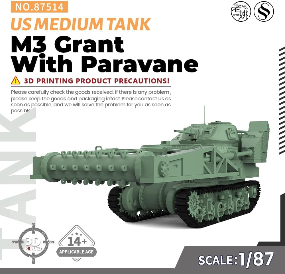 Kit modello militare ferroviario in scala HO US M3 Grant con rapporto serbatoio medio Paravane: 1/87 Caratteristiche: non dipinto Tema: militare Materiale: resina verniciata 3D