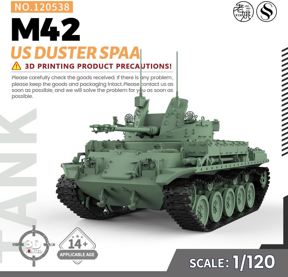 SSMODEL SS100538 1/100 15mm WarGaming Kit modello militare US M42 Duster SPAA Rapporto: 1/120 Caratteristiche: Non dipinto Tema: Militare Materiale: Resina verniciata 3D