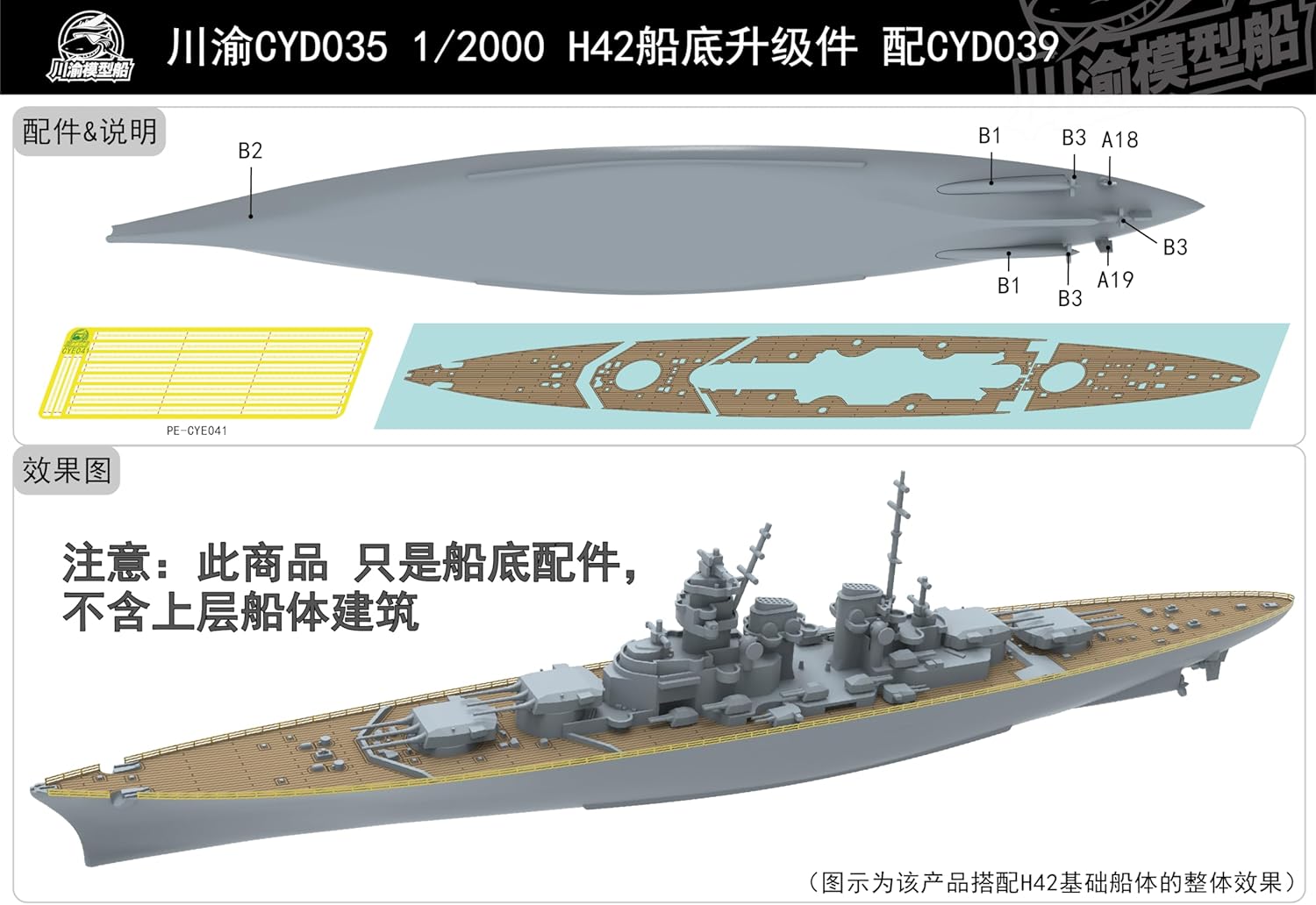 CYD035 1/2000 H42 Parti di aggiornamento della corazzata per il ponte in legno della nave Rapporto ringhiera inferiore: 1/2000 Caratteristiche: Non dipinto Tema: Militare Materiale: Resina verniciata 3D