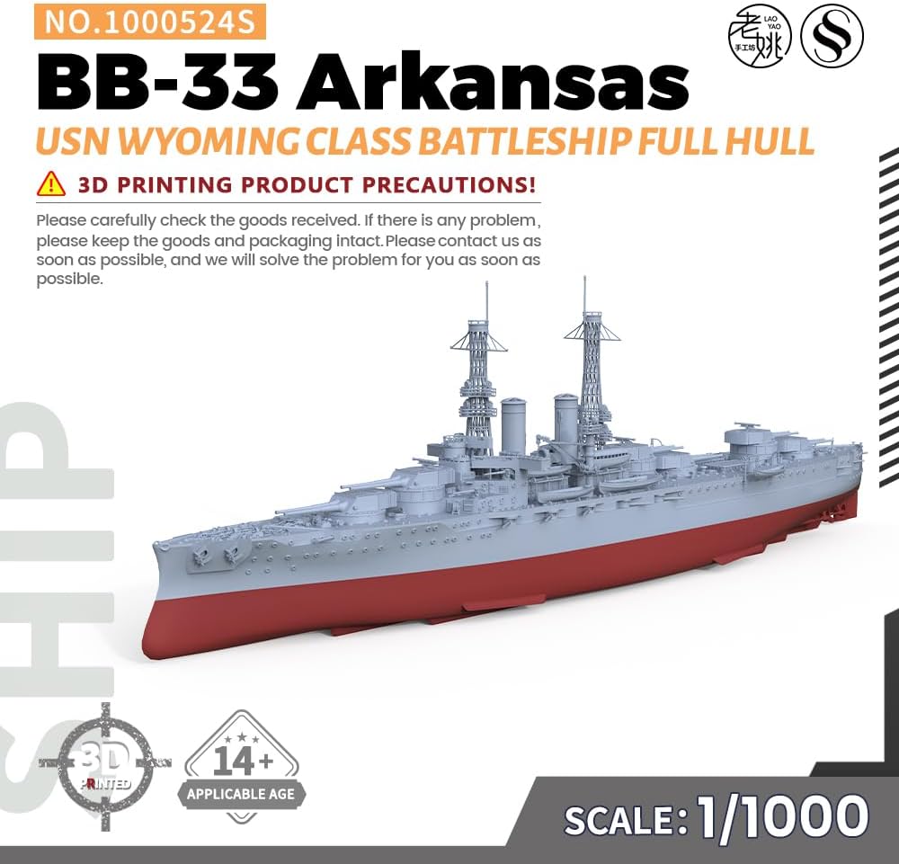Kit modello militare USN Wyoming Classe Arkansas Battleship BB-33 Rapporto scafo completo: 1/1000 Caratteristiche: Non dipinto Tema: Militare Materiale: Resina verniciata 3D