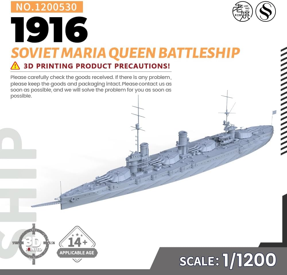 Kit modello militare Corazzata sovietica Maria Queen 1916 Rapporto: 1/1200 Caratteristiche: Non dipinto Tema: Militare Materiale: Resina dipinta 3D