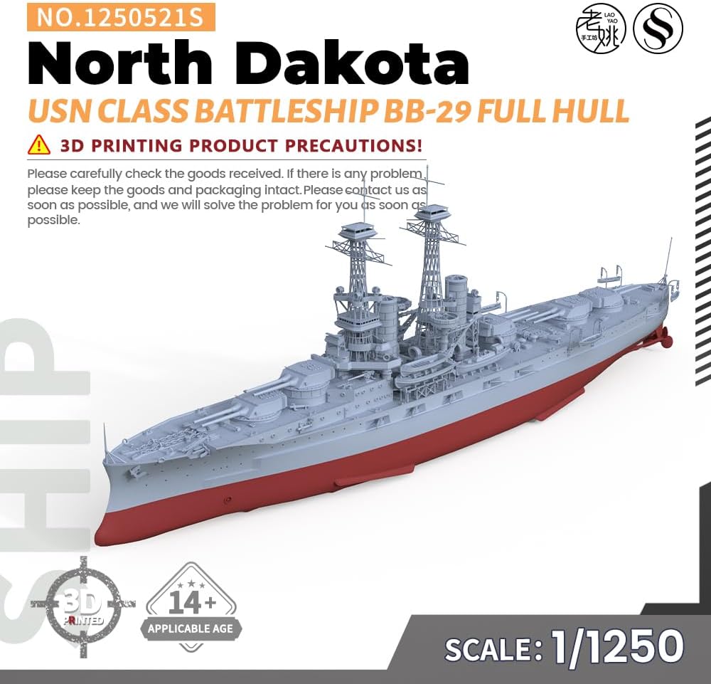 Kit modello militare USN North Dakota Class Battleship BB-29 Rapporto scafo completo: 1/1250 Caratteristiche: Non dipinto Tema: Militare Materiale: Resina dipinta 3D