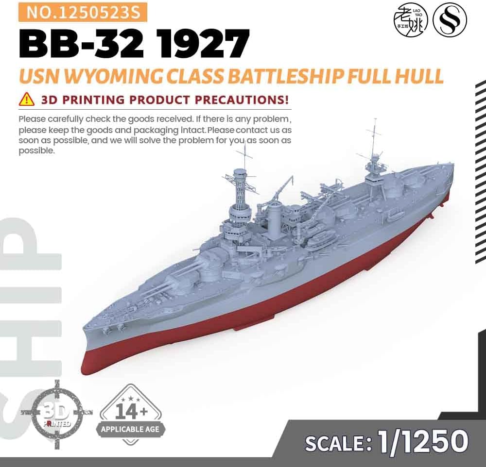 Kit modello militare USN Wyoming classe 1927 Corazzata BB-32 Rapporto scafo completo: 1/1250 Caratteristiche: Non dipinto Tema: Militare Materiale: Resina verniciata 3D