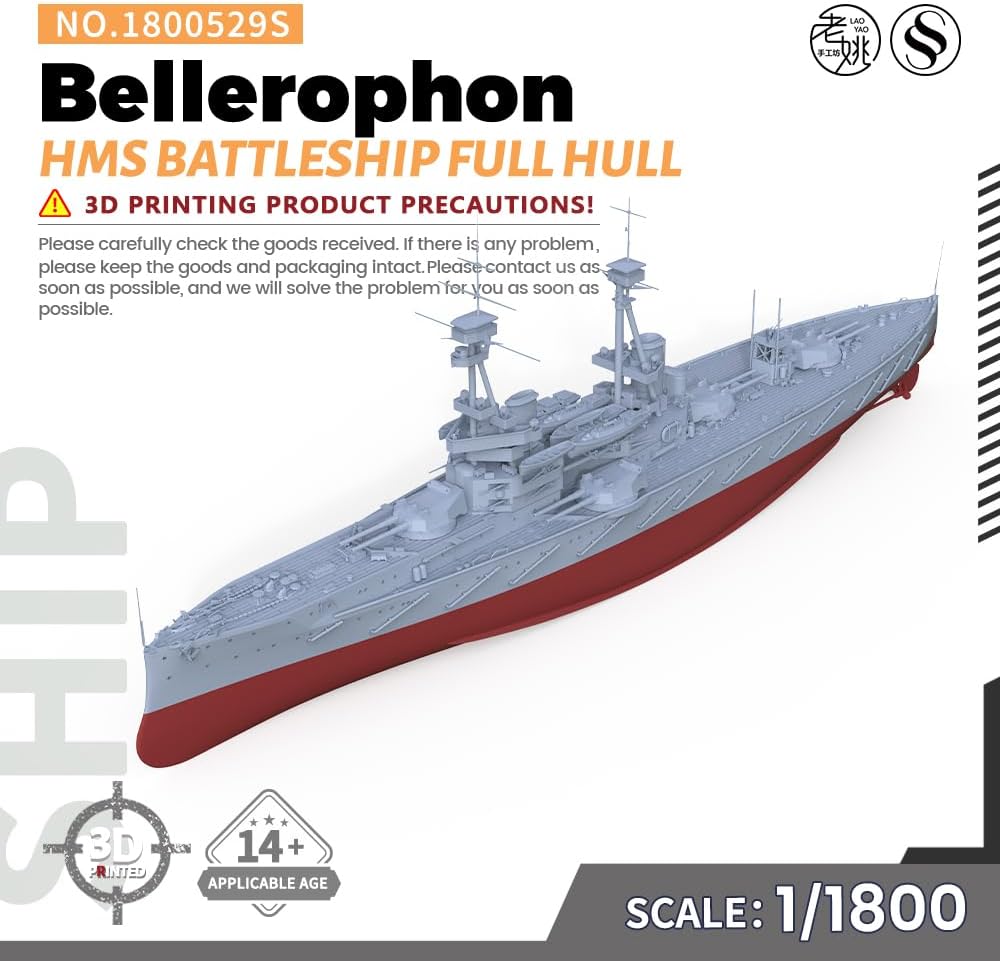 Kit modello militare HMS Bellerophon Battleship Rapporto scafo completo: 1/1800 Caratteristiche: Non dipinto Tema: Militare Materiale: resina verniciata 3D
