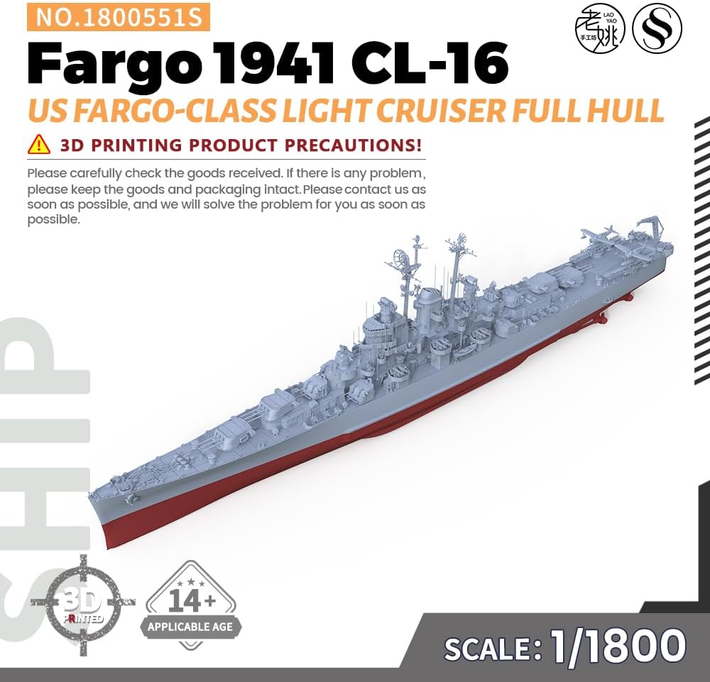 MRY-SFW Corazzata Non Verniciata 1/1800 Kit Modello Militare US Fargo Fargo Classe Incrociatore Leggero CL-106 Scafo Completo