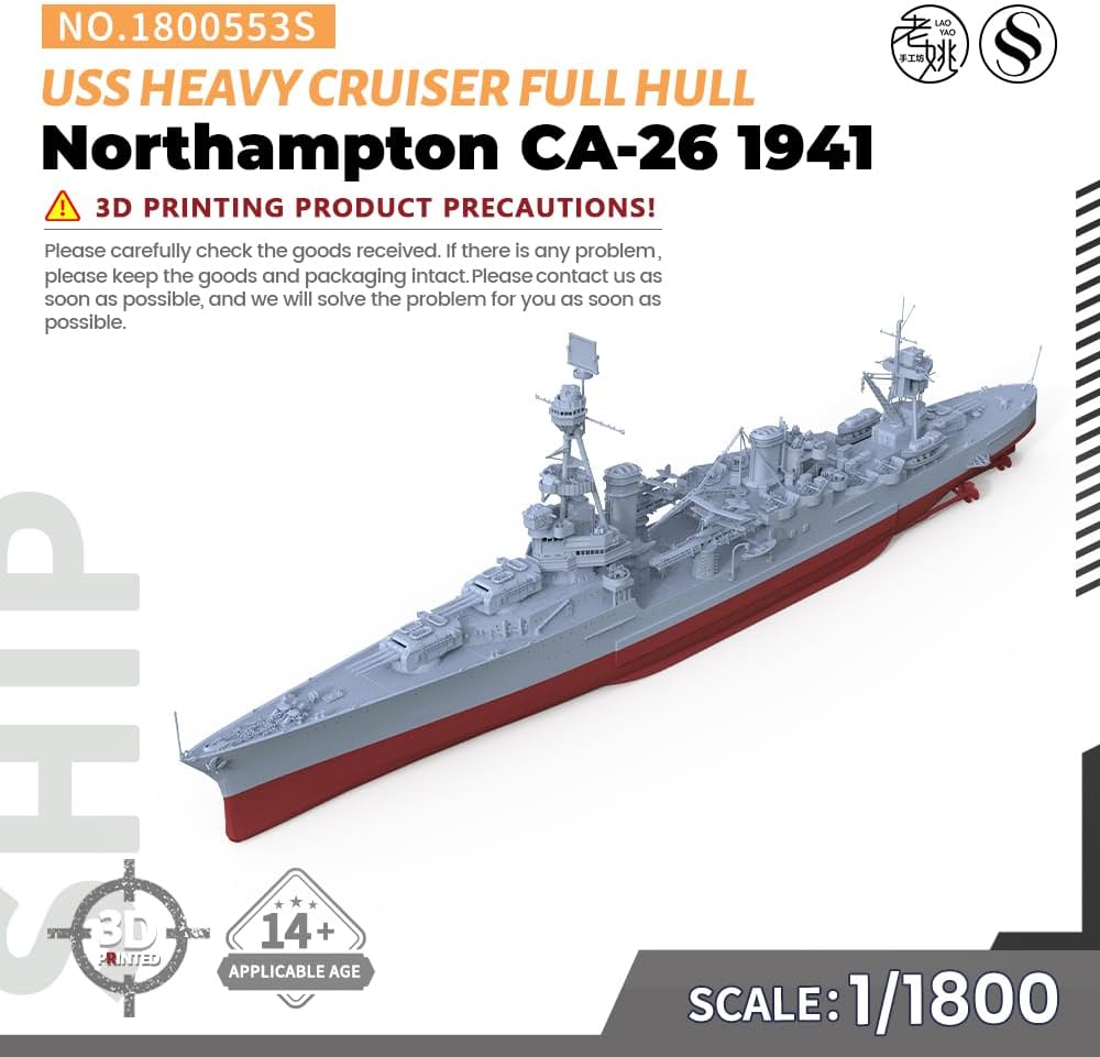 MRY-SFW Corazzata Non verniciata 1/1800 Kit modello militare USS Northampton CA-26 Incrociatore pesante 1941 Scafo completo
