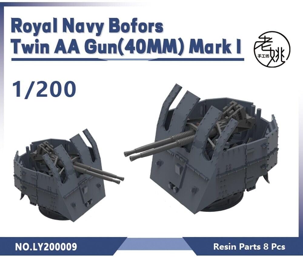 MRY-SFW Corazzata Non verniciata 1/200 Parti di aggiornamento del modello Royal Navy Bofors Twin AA Gun (40MM) Mark I
