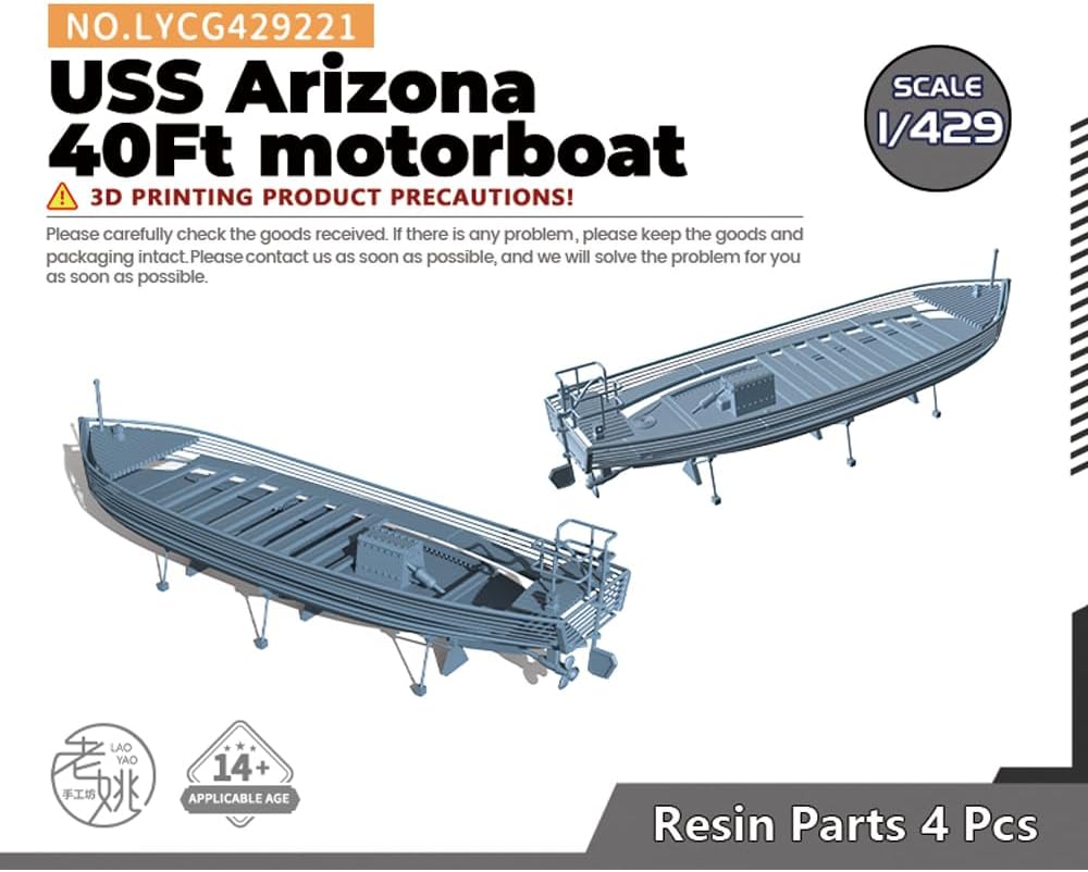 Aggiornamenti del modello Parti del motoscafo USS Arizona 40Ft Rapporto: 1/429 Caratteristiche: Non verniciato Tema: Militare Materiale: Resina verniciata 3D