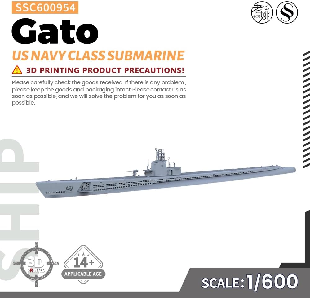 Modello militare US Navy Gato Classe Sottomarino Rapporto: 1/600 Caratteristiche: Non dipinto Tema: Militare Materiale: Resina dipinta 3D