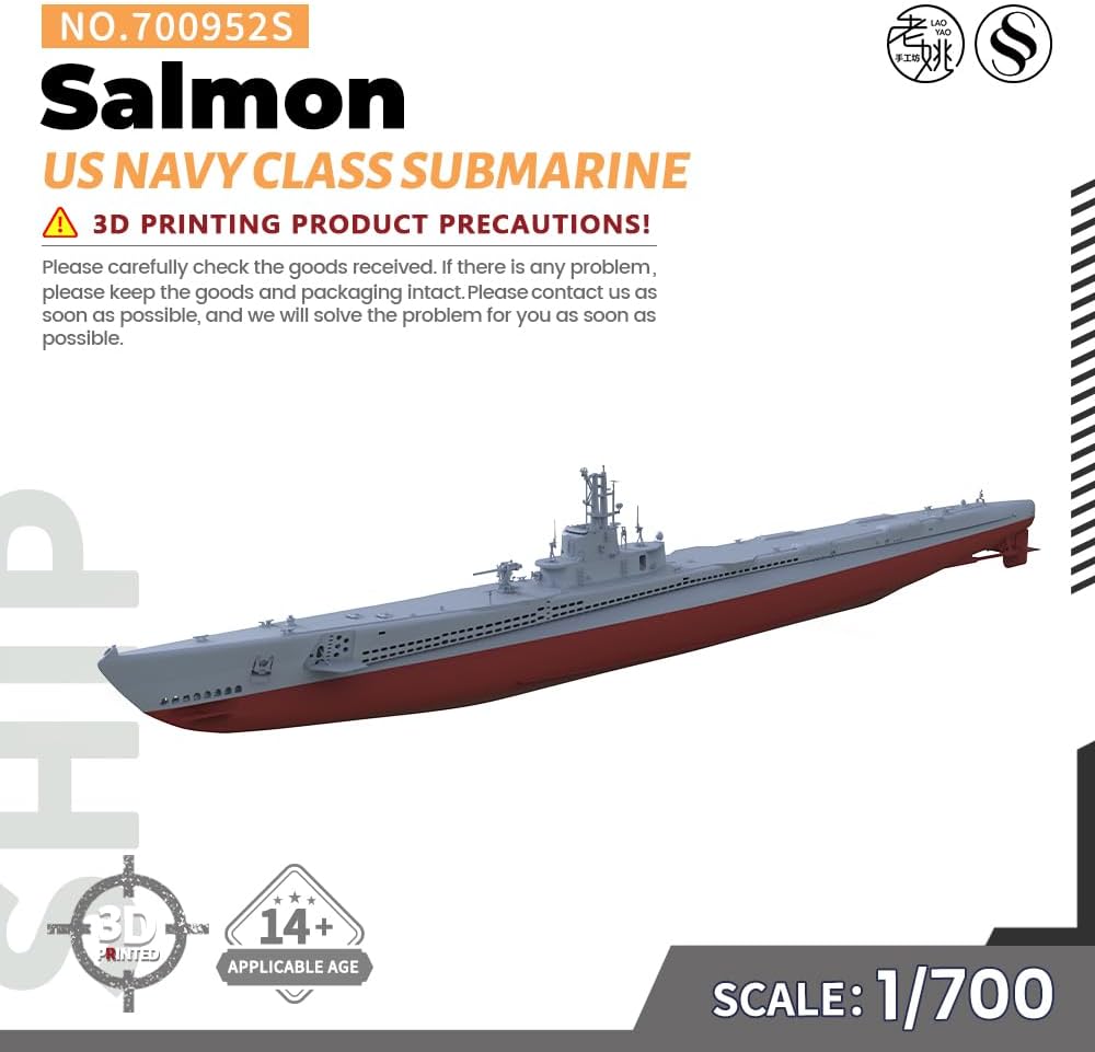 Modello militare US Navy Salmon Class Sottomarino Rapporto scafo completo: 1/700 Caratteristiche: Non dipinto Tema: Militare Materiale: Resina verniciata 3D