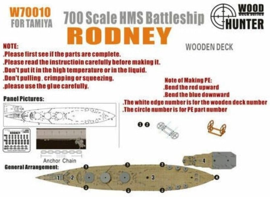Hunter W70010 1/700 Ponte in legno HMS CORAZZATA RODNEY PER TAMIYA 77502 Rapporto: 1/700 Caratteristiche: Non dipinto Tema: Militare Materiale: Resina verniciata 3D