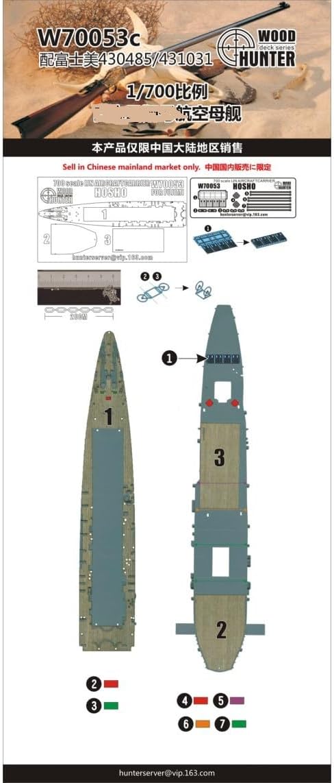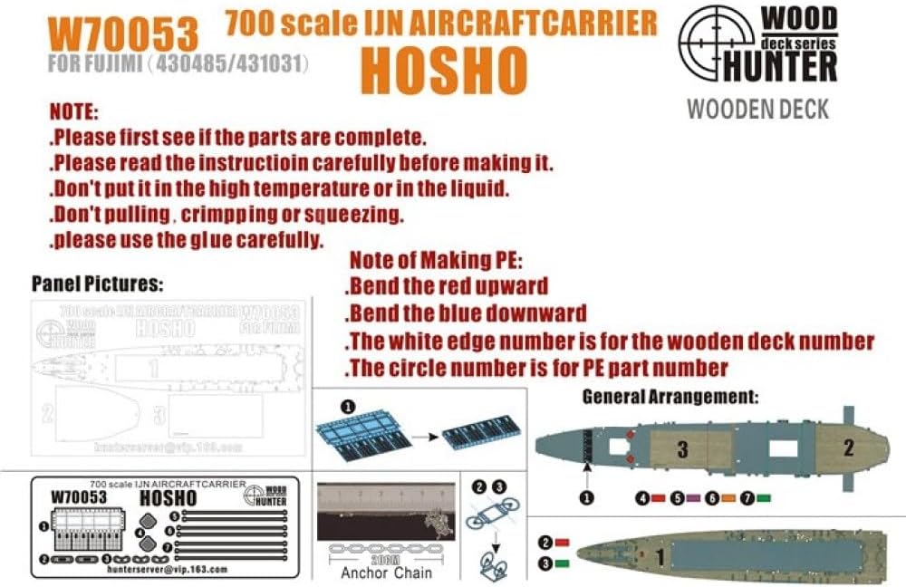 Hunter W70053 1/700 Ponte in legno IJN AIRCRAFTCARRIER HOSHO PER FUJIMI 430485/431031 Rapporto: 1/700 Caratteristiche: Non dipinto Tema: Militare Materiale: Resina verniciata 3D