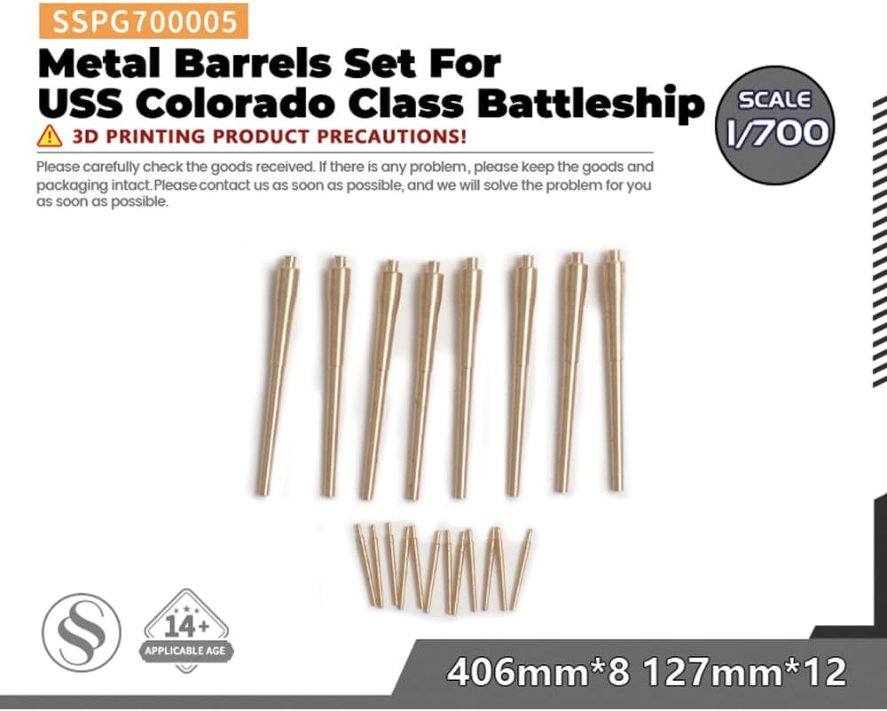 Set di botti di metallo per la corazzata classe USS Colorado 406mm * 8 127mm * 12 Rapporto: 1/700 Caratteristiche: Non verniciato Tema: Militare Materiale: Resina verniciata 3D