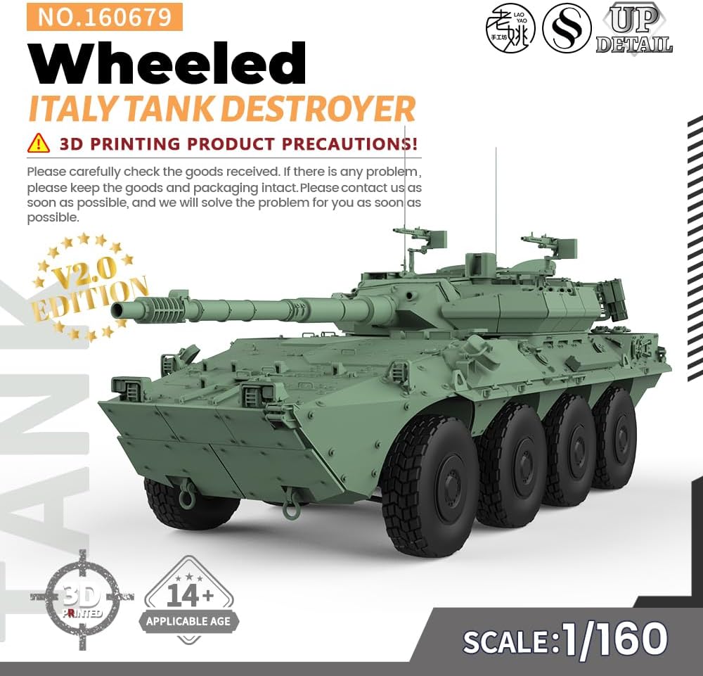 MRY-SFW Kit modello militare ferroviario in scala 1/160 di carro armato dell'esercito italiano Cacciatore di carri armati con ruote