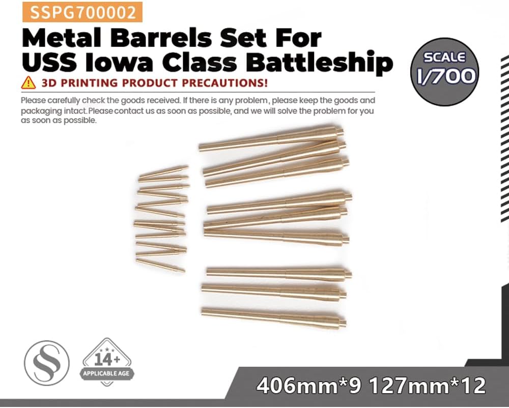 MRY-SFW Set di canne di metallo per corazzata non verniciata 1/700 per corazzata classe USS Iowa 406mm * 9 127mm * 12