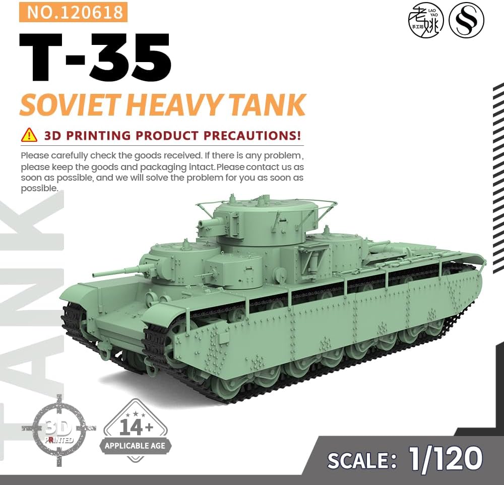 MRY-SFW SS120618 Kit modello militare ferroviario in SCALA 1/120 TT, carro armato pesante sovietico T-35