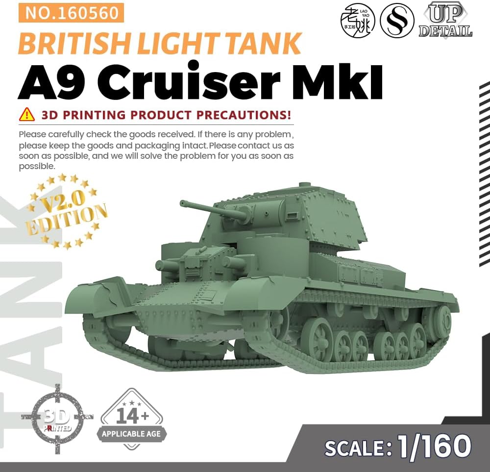 MRY-SFW SS160560 SCALA 1/160 N Kit modello militare ferroviario Carro armato leggero britannico A9 Cruiser MkI