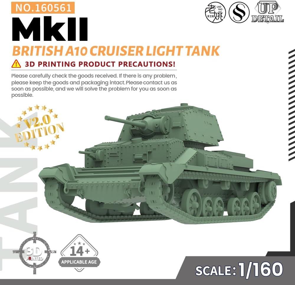 MRY-SFW SS160561 Kit modello militare ferroviario in SCALA 1/160 N Carro armato leggero britannico A10 Cruiser MkII