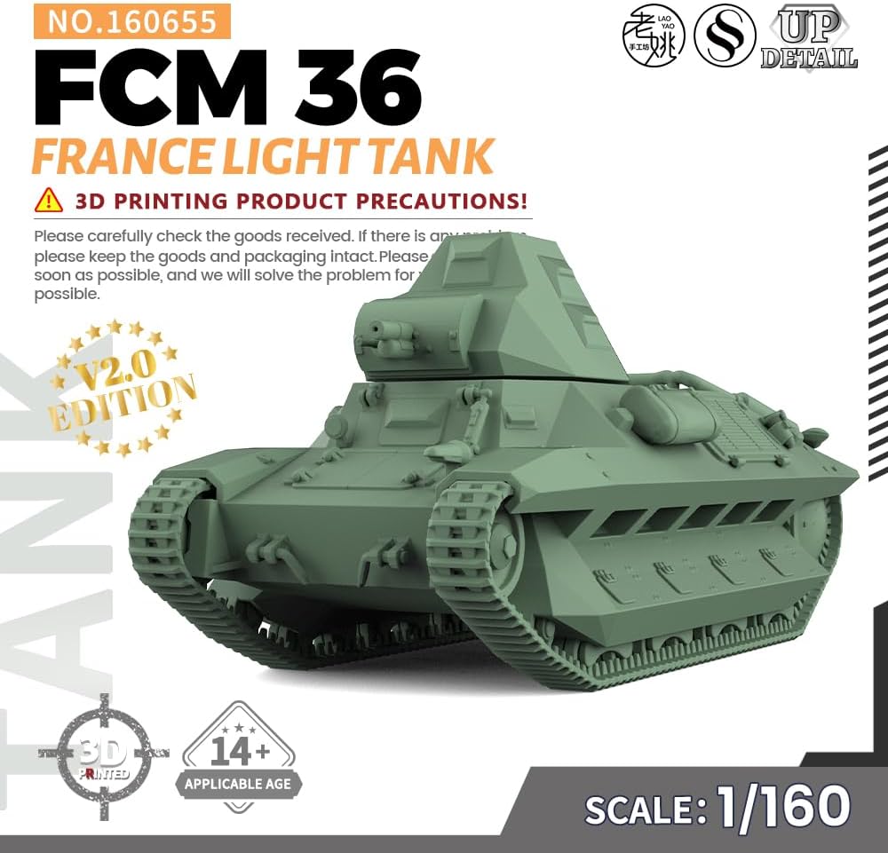 MRY-SFW SS160655 Kit modello militare ferroviario in SCALA 1/160 N Francia FCM 36 Carro armato leggero