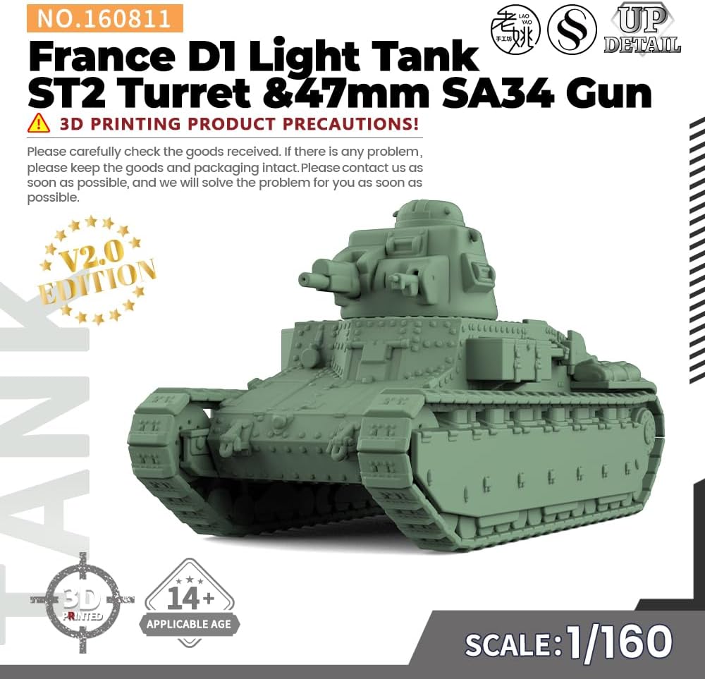 MRY-SFW SS160811 Kit modello militare ferroviario in SCALA 1/160 N Francia D1 Carro armato leggero Torretta ST2 e cannone SA34 da 47 mm